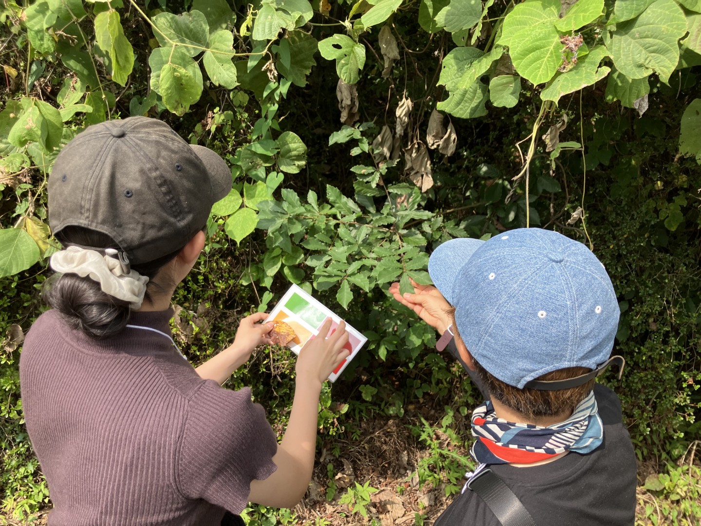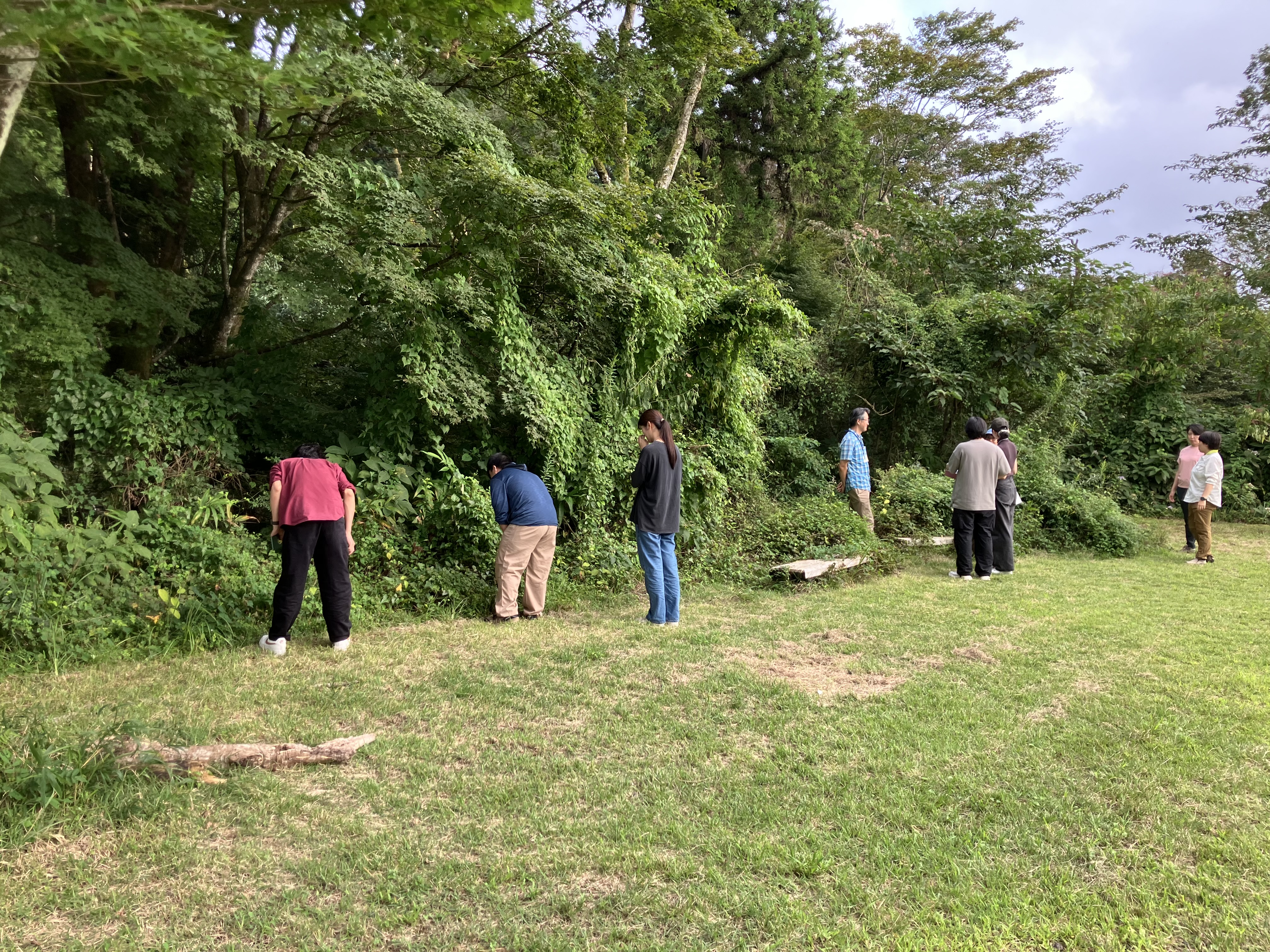 今はどんな自然素材があるのか、活用できる小道具(紙・ペン・図鑑等)があるのか、そもそもPGを通して何を伝えたいかなどを話し合い、フィールドの下見や企画をしていました。