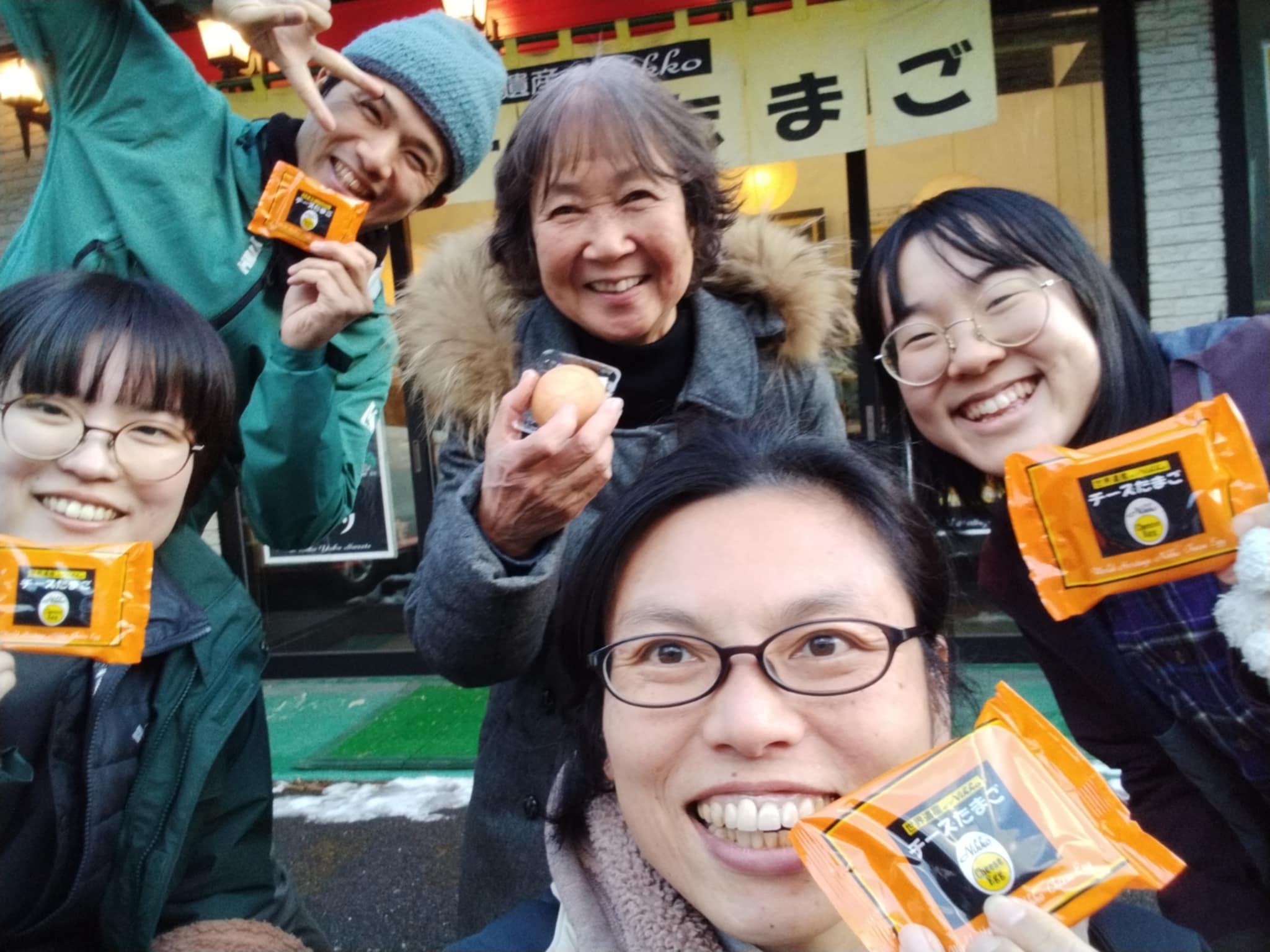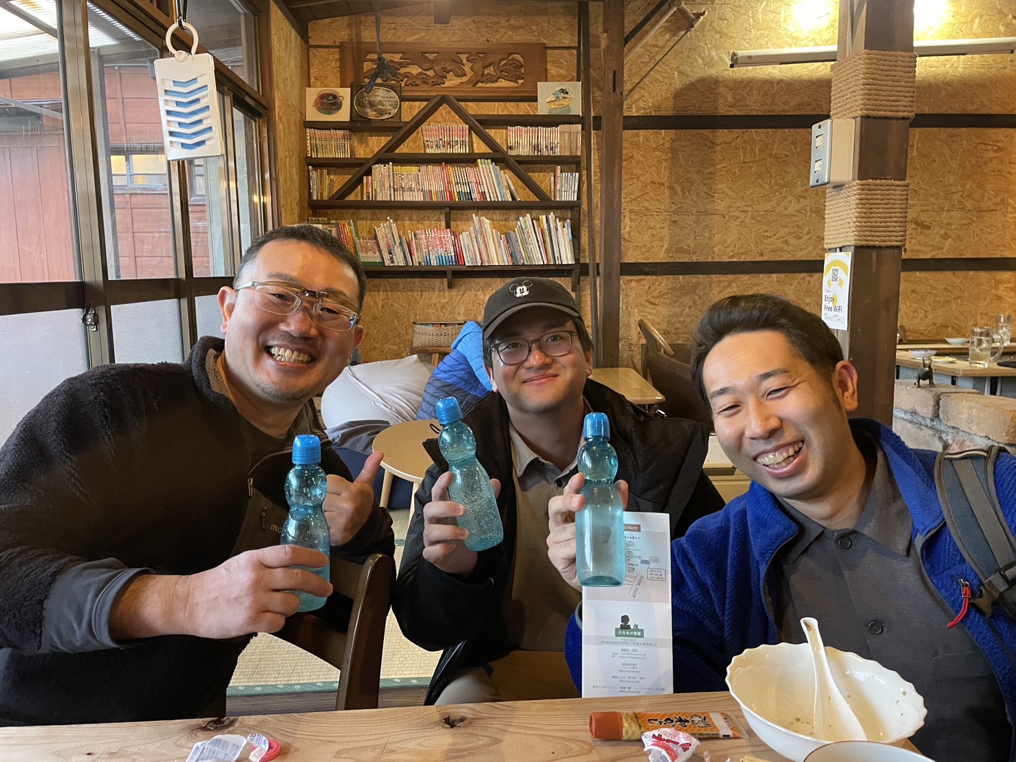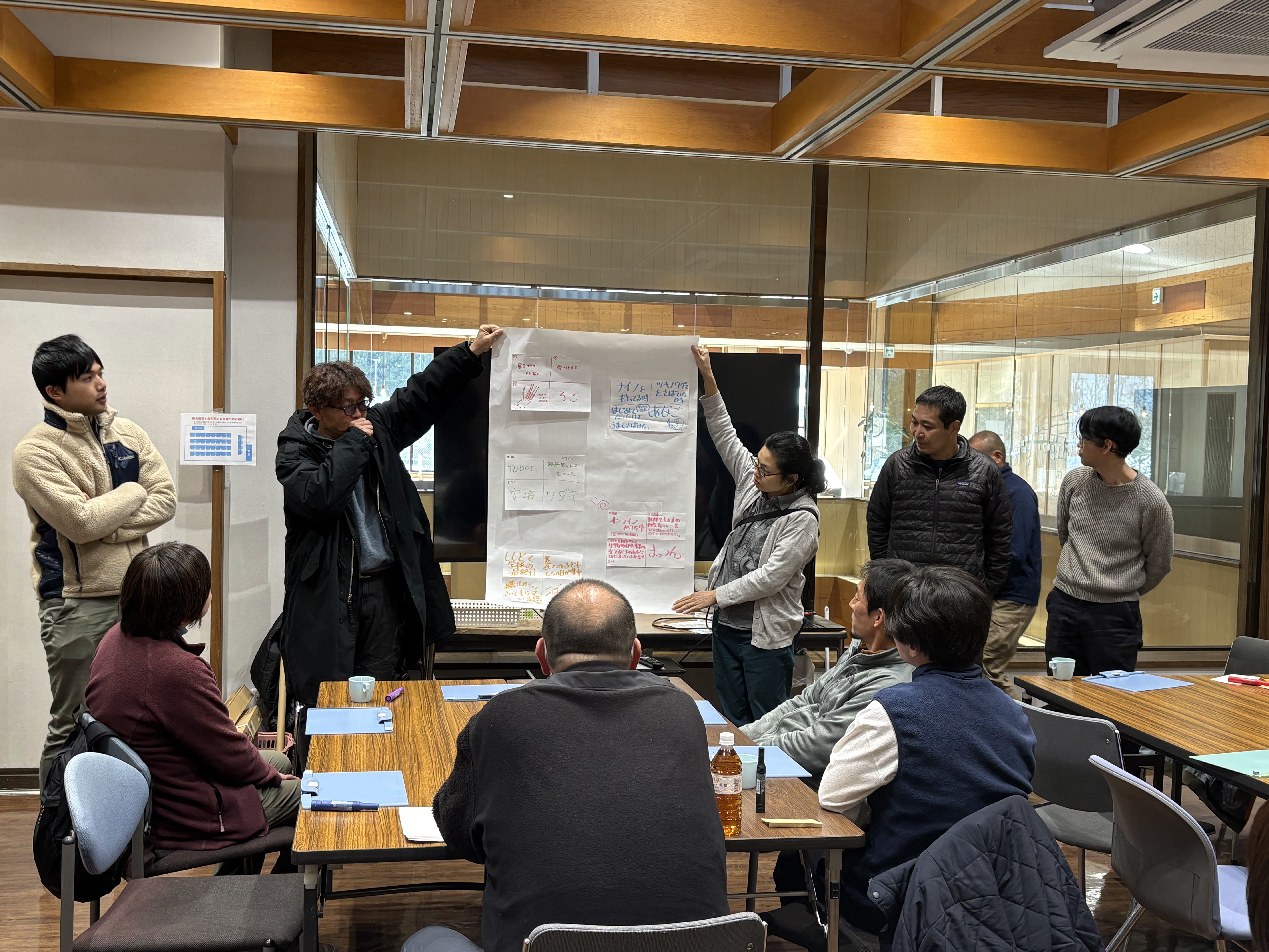 夕方、宿に戻って温泉に入った後は、夕食を食べながら各グループどんな過ごし方をしたのかを、写真を交えながらシェア。グループによって過ごし方は全く違っていて、どのグループも色んな楽しみ方を見つけたようでした。