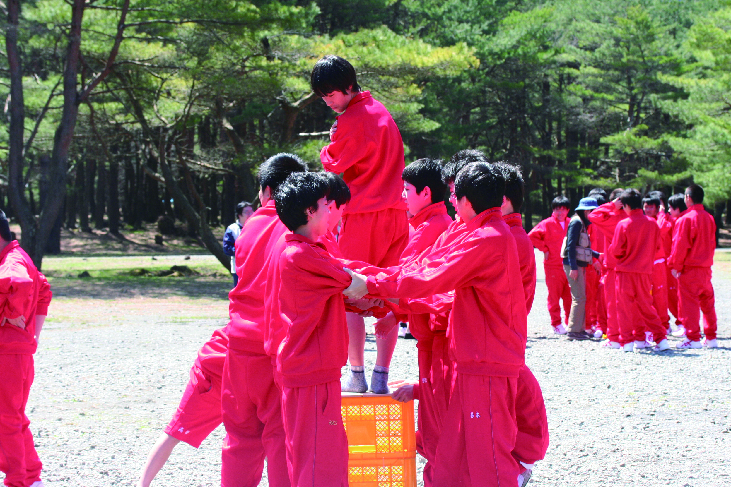 グループごとに出された「お題」にゲーム感覚で取り組みます。仲間とのコミュニケーションや協調性を磨く、大規模校向けチームビルディング。