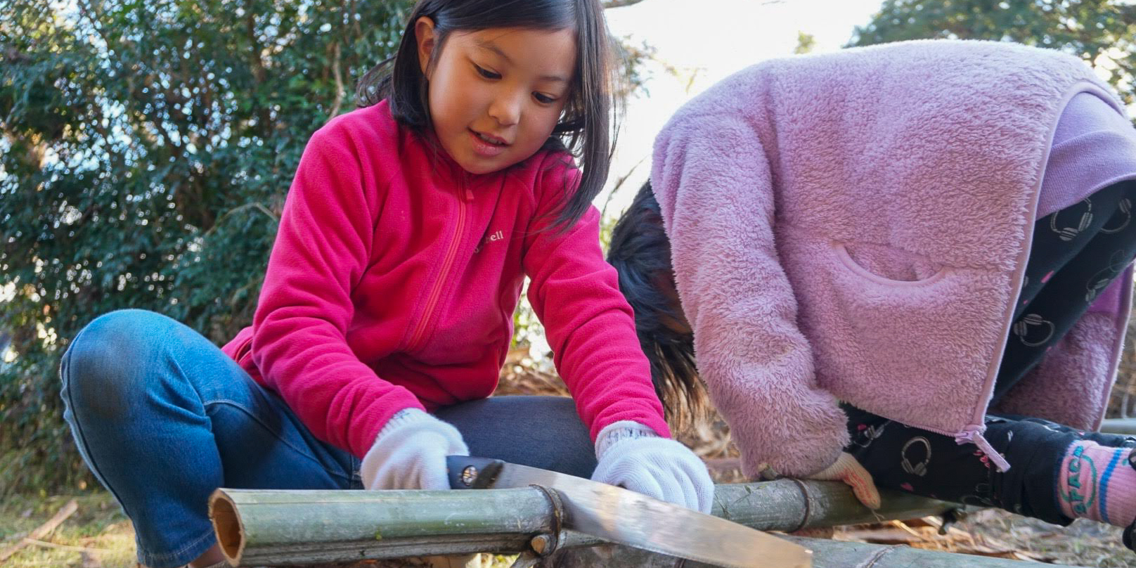 自分で竹を好きな長さに切って、好きなように飾りつけてみよう。