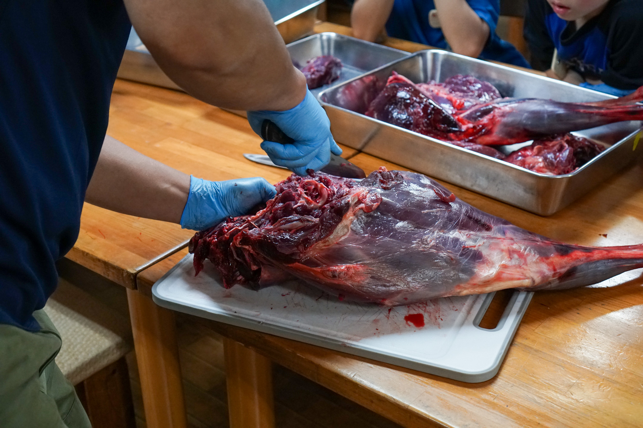鹿の足をさばき、ジビエ料理をみんなで作って食べてみよう。