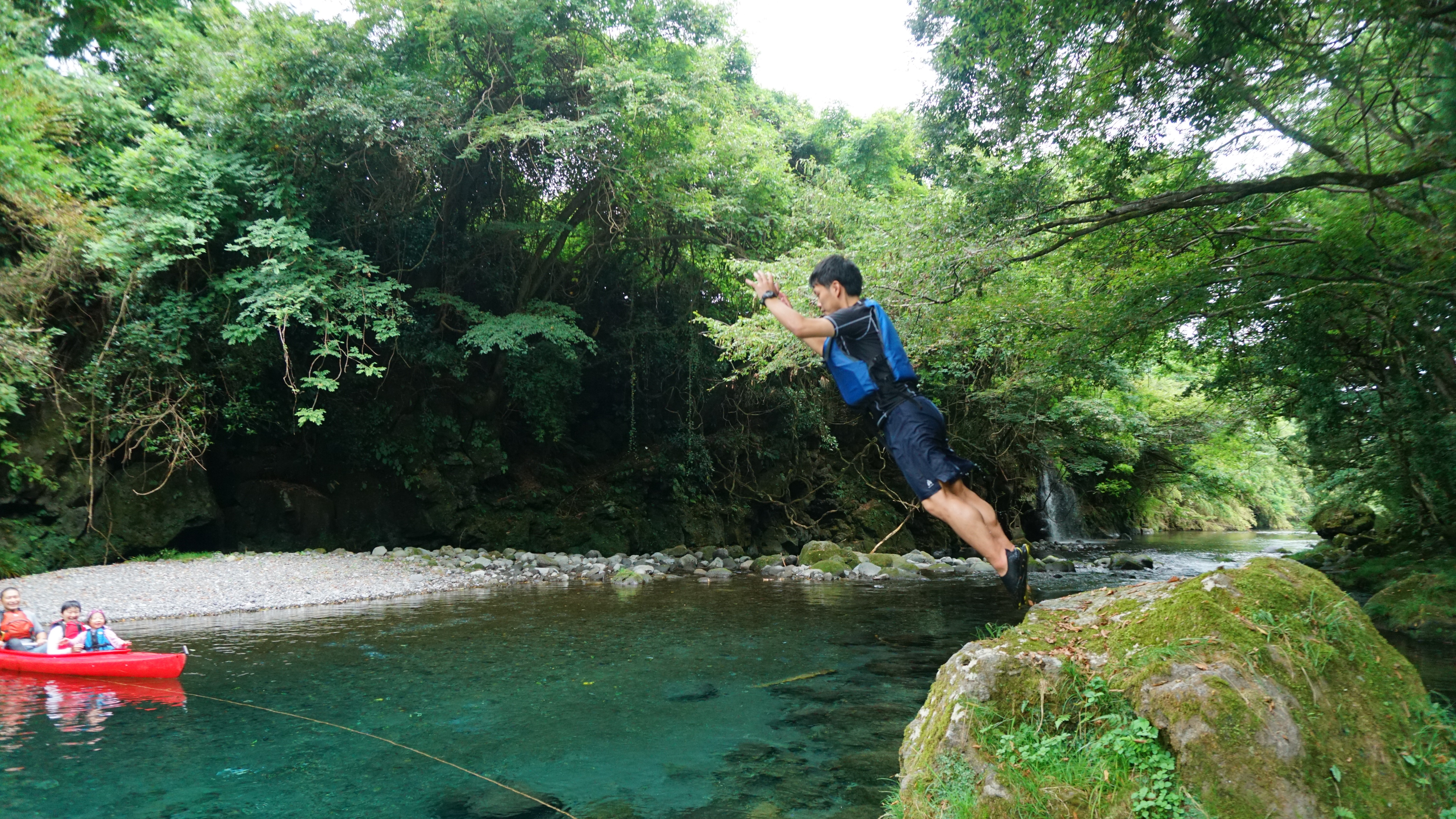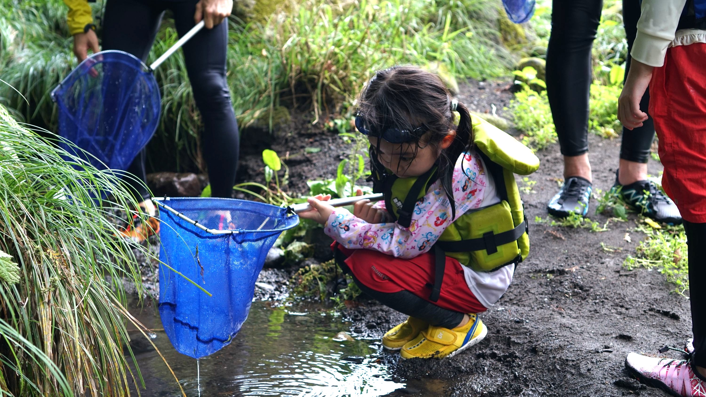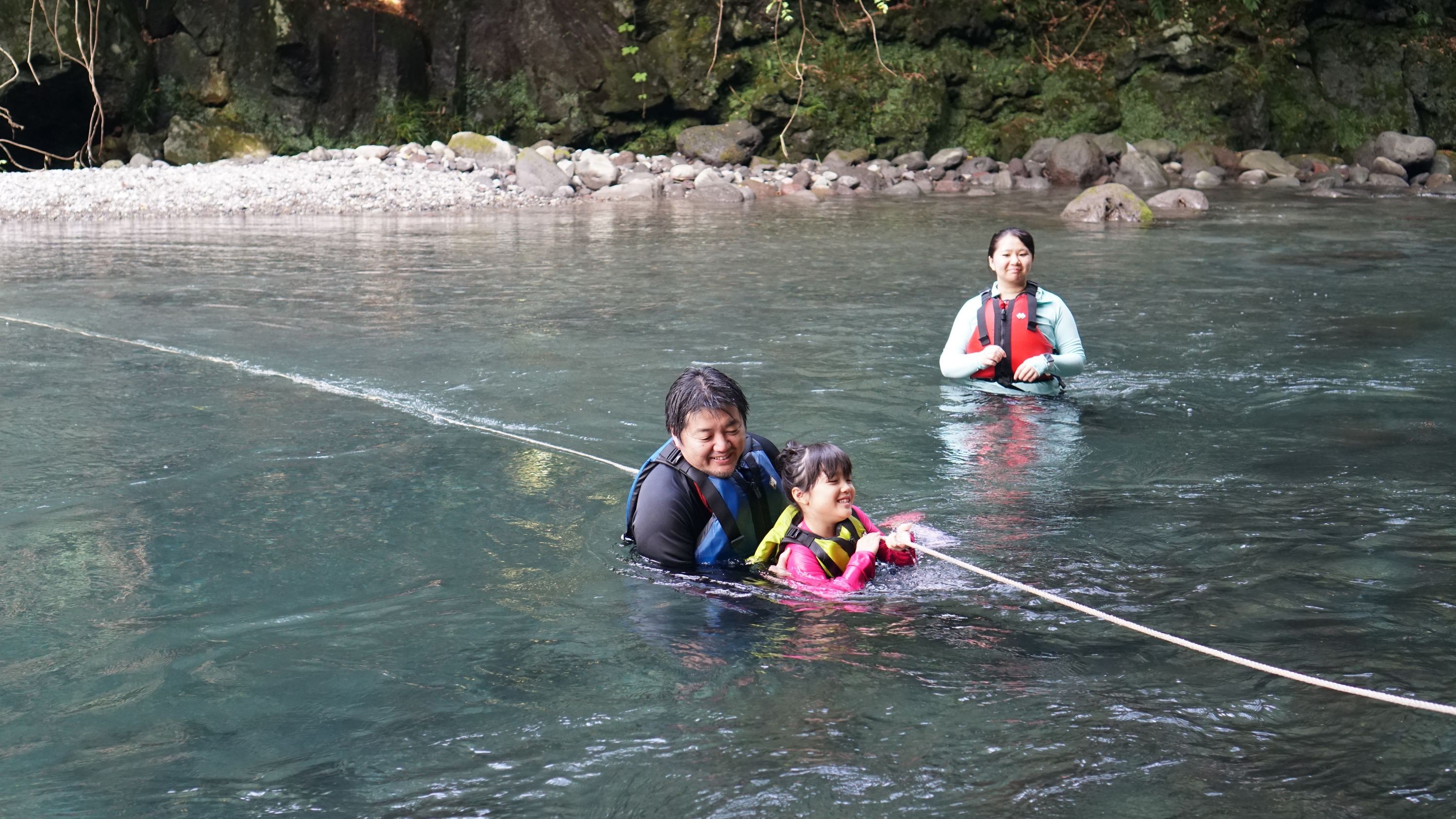 そんな富士山の湧水流れる川に、子どもはもちろん、大人も思いきりダイブ!