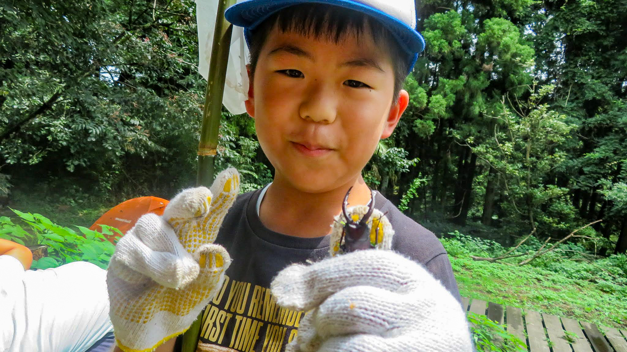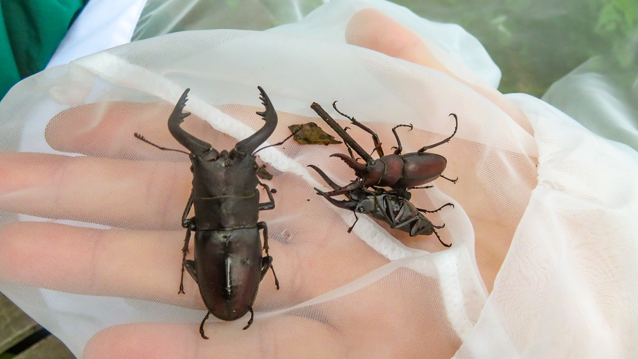 「あのさ、木を蹴ったらクワガタがたくさん落ちてきたの!ほら!」