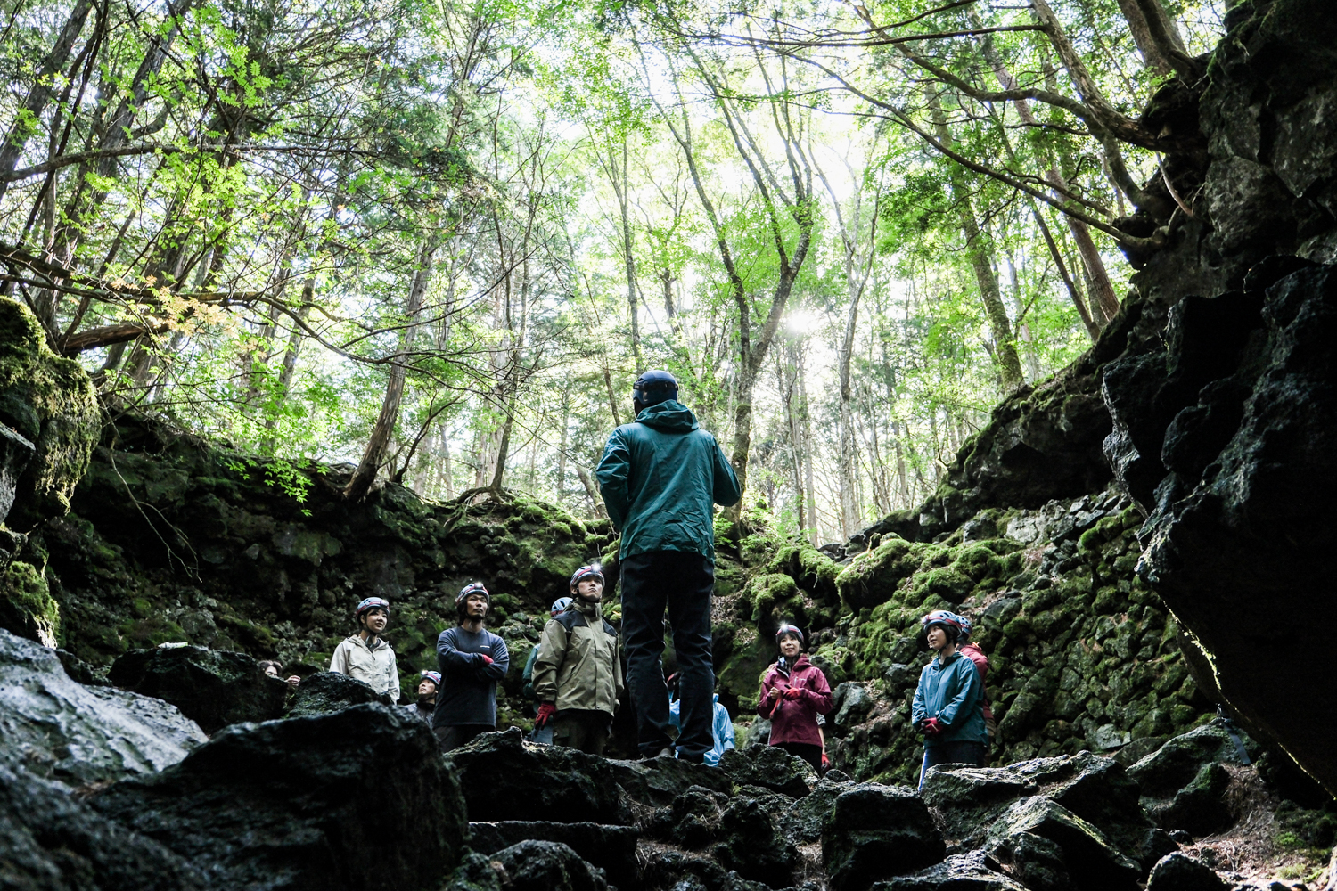 合流後は、洞窟樹海探険のプログラムを体験。