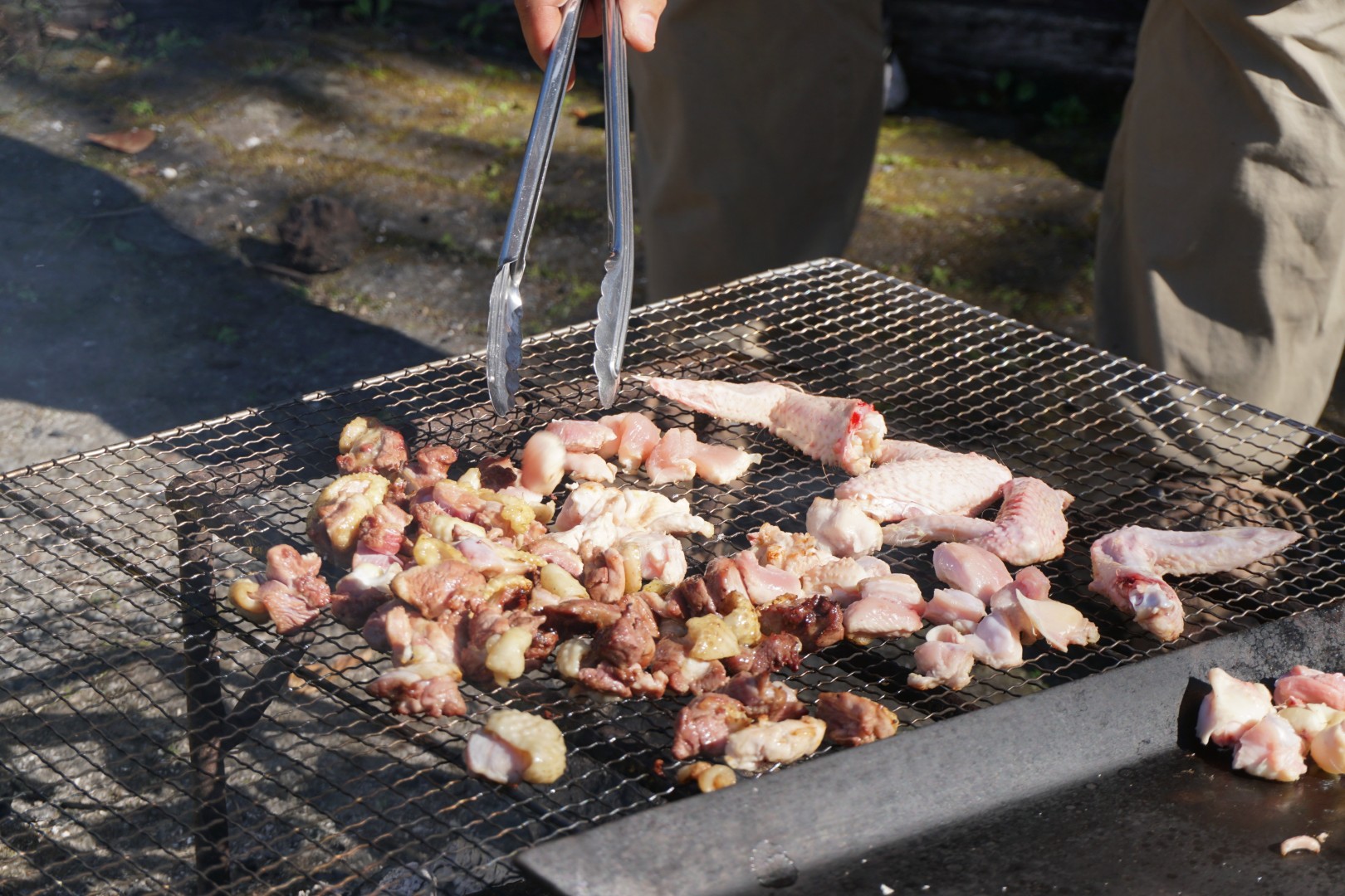 さて、今度は食べられるように捌いていきます。むね肉、もも肉、手羽先、ささみ、いつも見ているお肉は、こんな風についているのか!という発見の連続です。