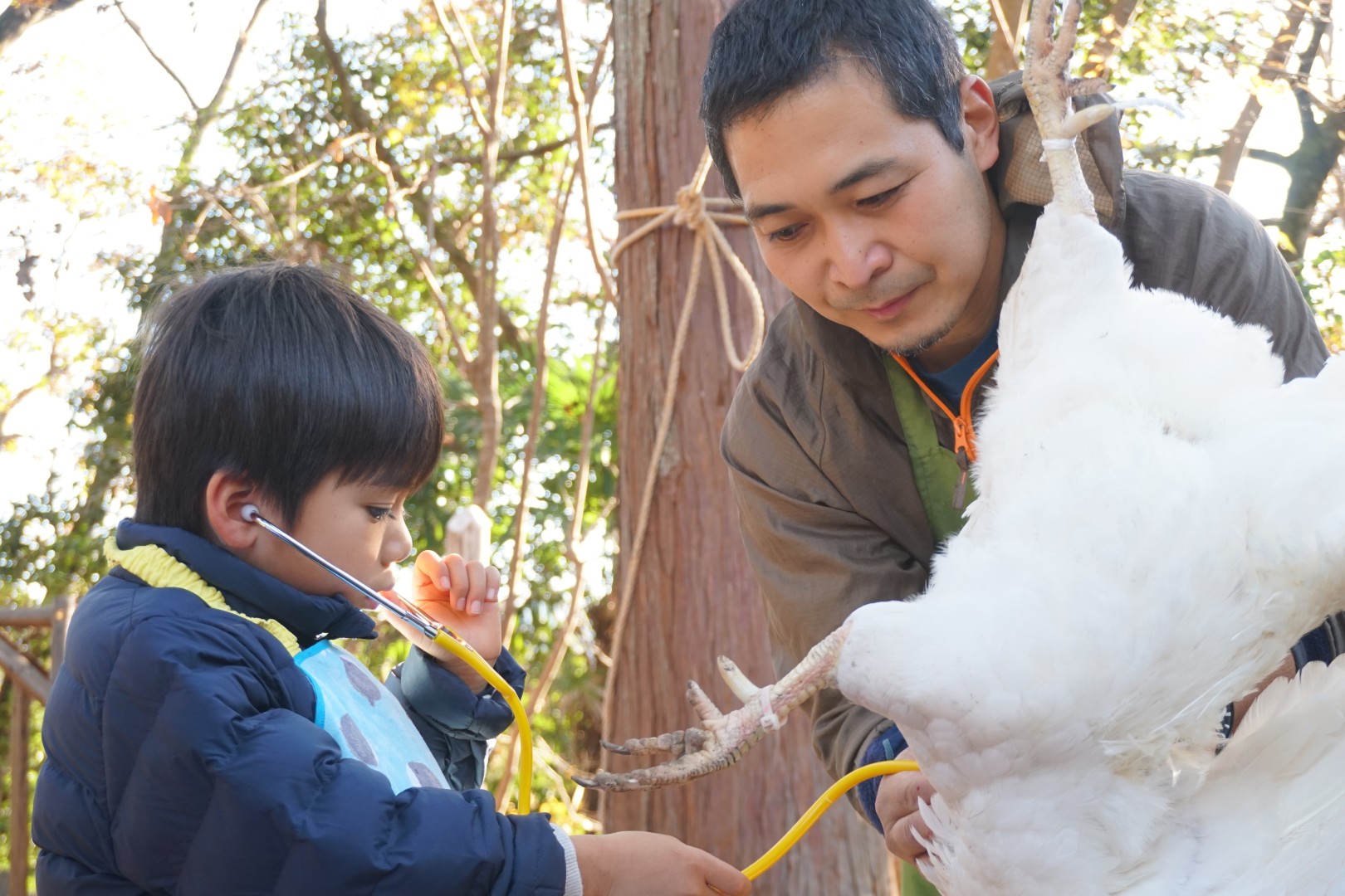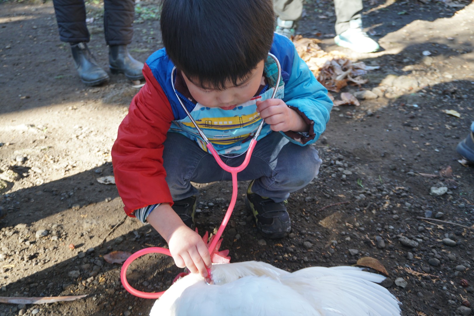 それから、にわとりの脈拍も聞いてみます。人間とどう違うでしょうか?