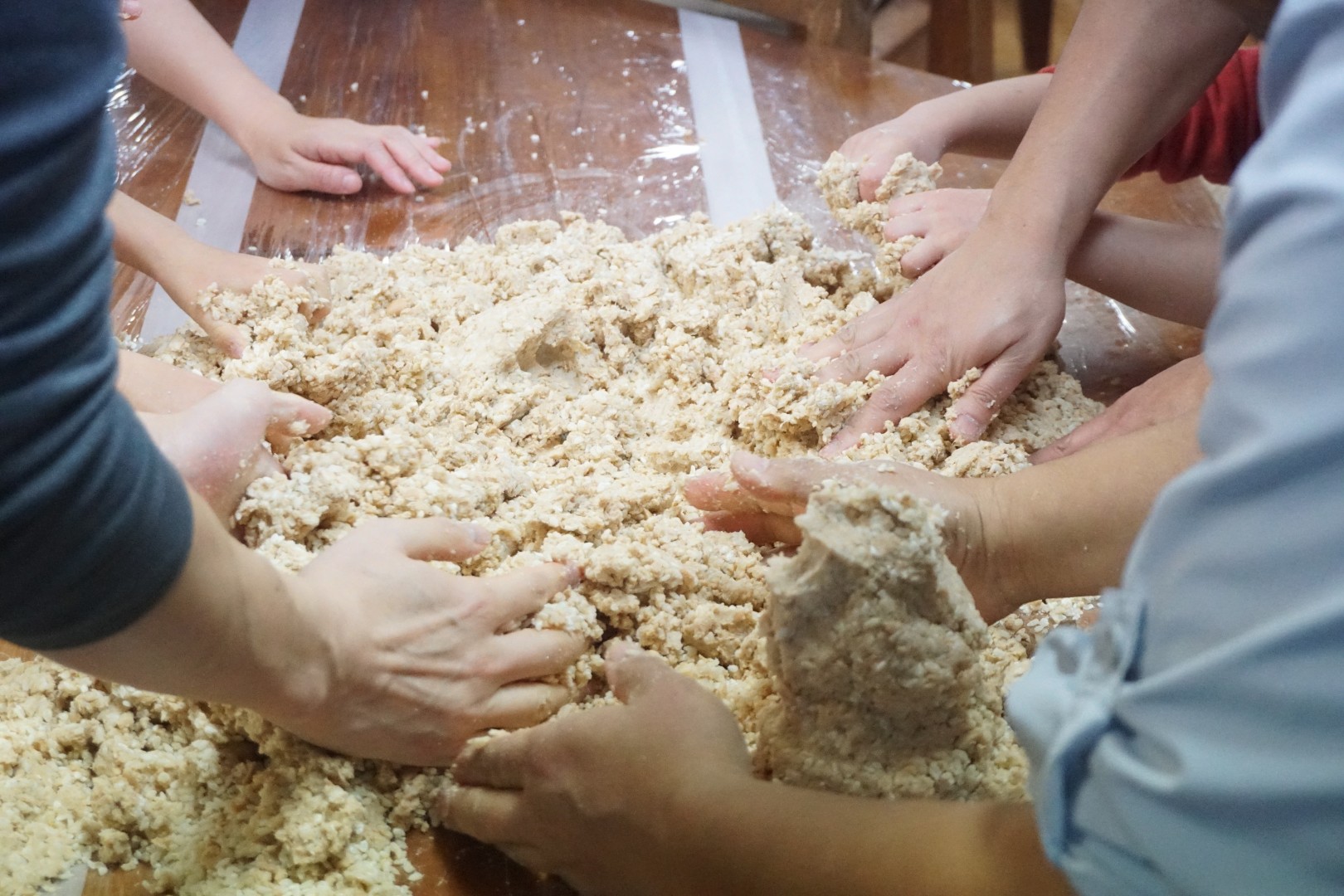 混ざったら、今度は空気が入らないようにぎゅっぎゅっとおだんごを作っていきます。しっかり詰めたらできあがり!(でも食べられるようになるのは来年です)