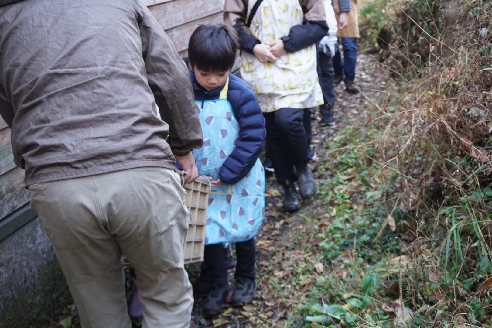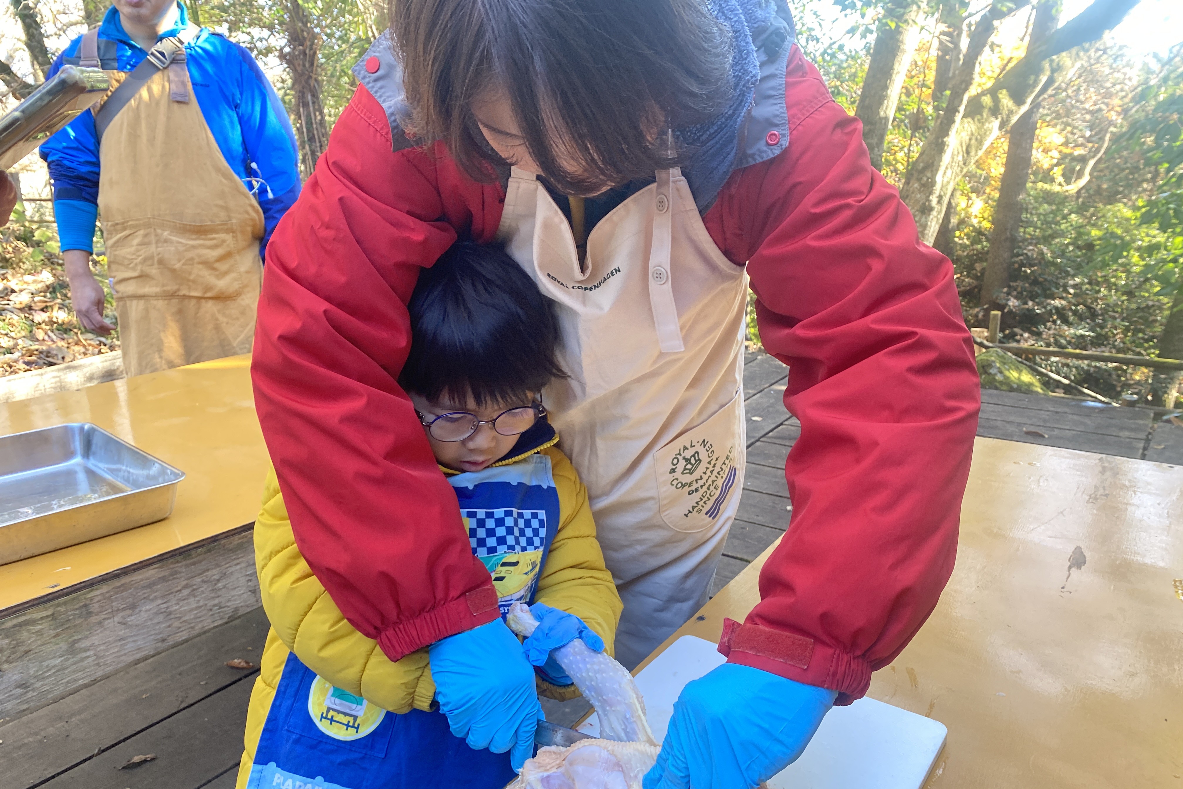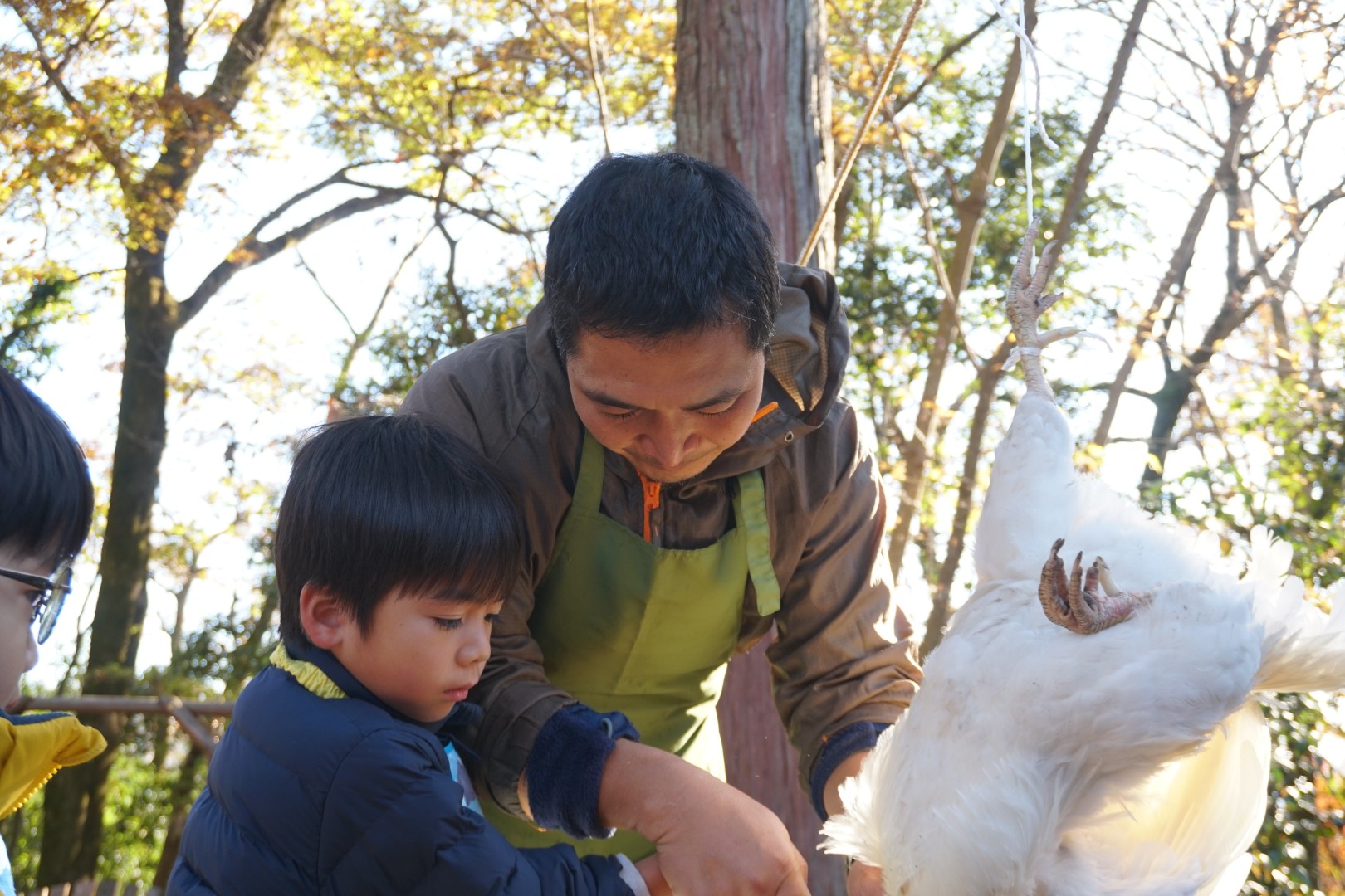 今回の里山のようちえんのテーマは「にわとりの屠畜とみそ作り」