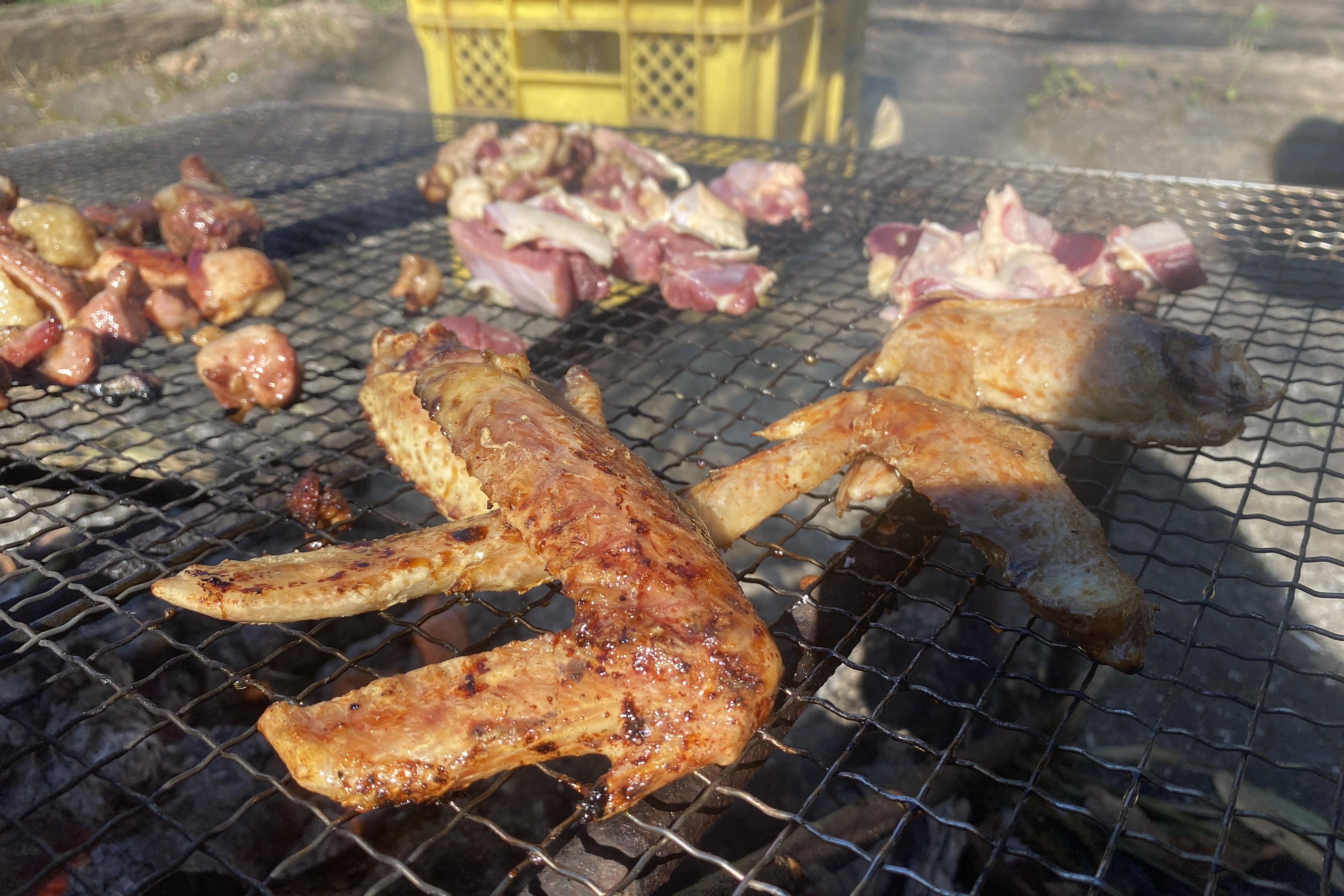 捌いたお肉は焼き鳥に、食べれない部分は鶏がらをとってスープにして食べました。