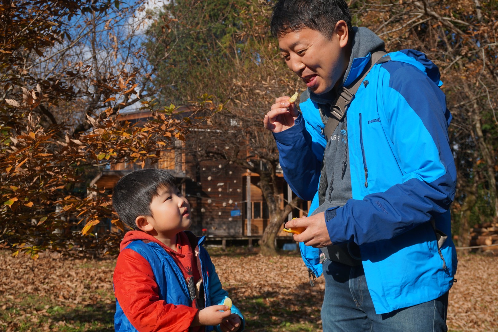 広場に植わっているみかんの木に実がなっていたので味見してみたり(めっちゃすっぱい)、