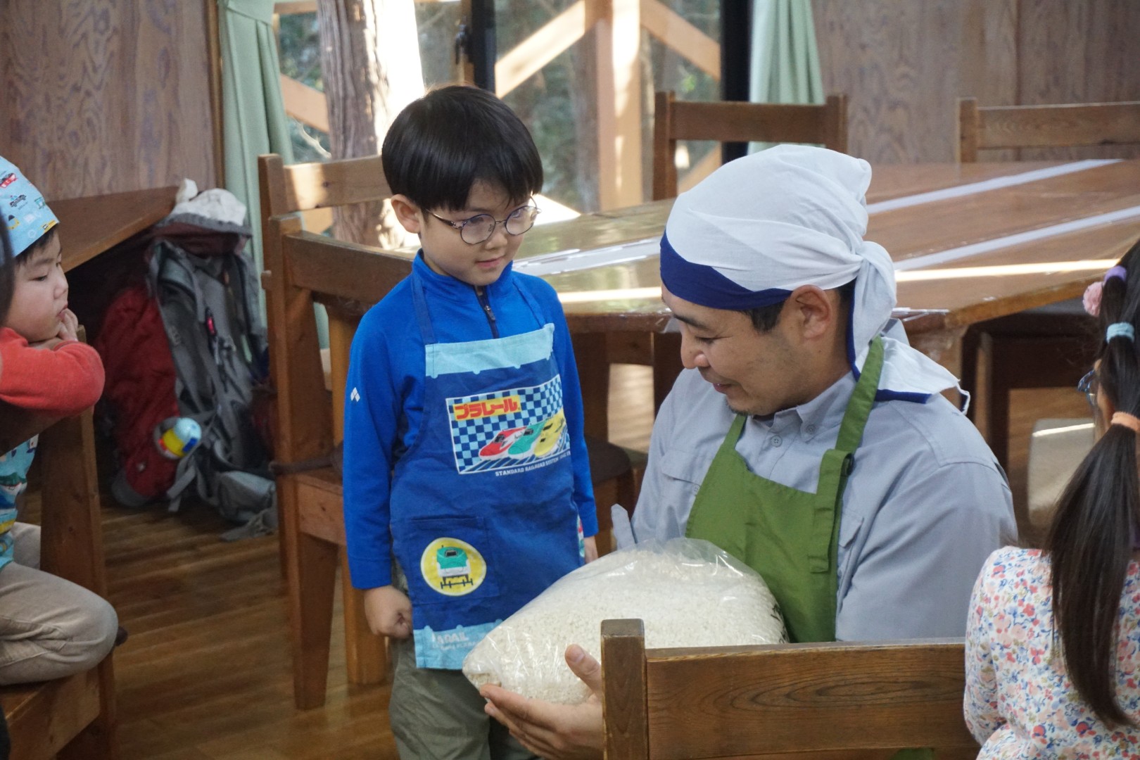 そして、「お味噌はどんな風にできるの?」という話も。材料は、大豆と、塩と、米麹。「麴菌」という“いい”菌のおかげで、味噌ができるんだよ、というお話をしました。