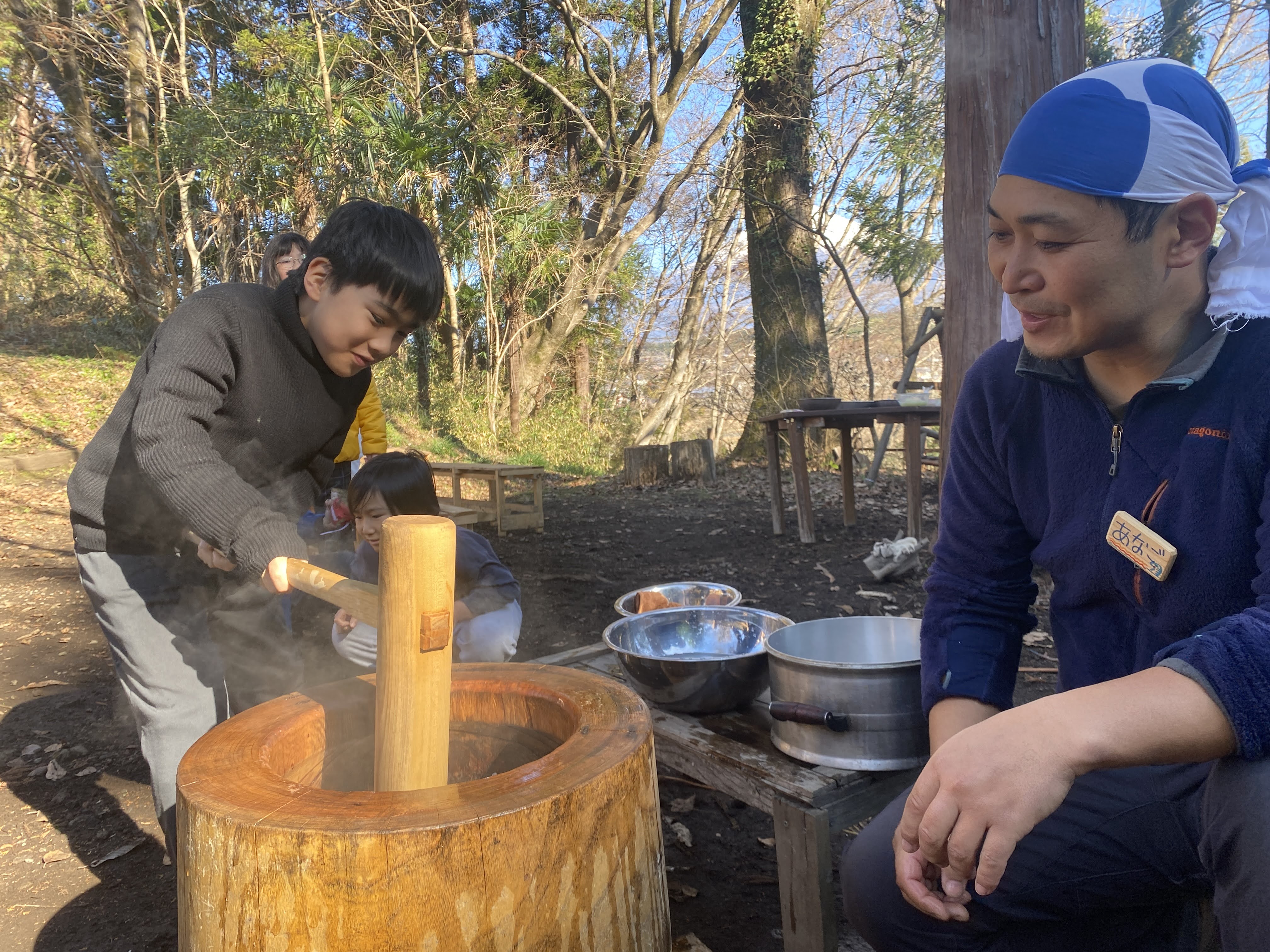 今回のキャンプではお正月を迎えるための準備を、仲間と一緒に行いました。