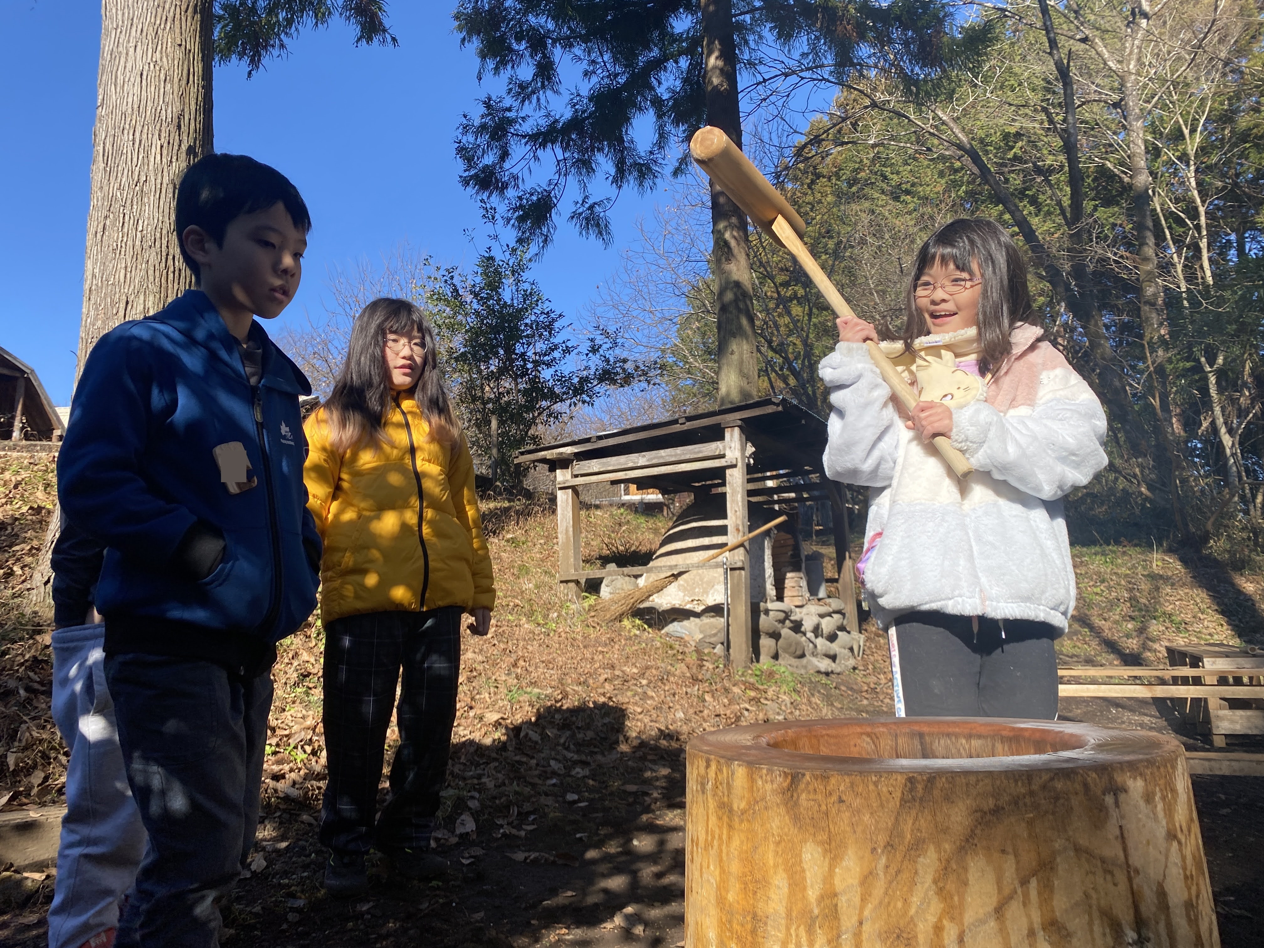 2日目のお昼は、みんなで「もちつき」に挑戦!