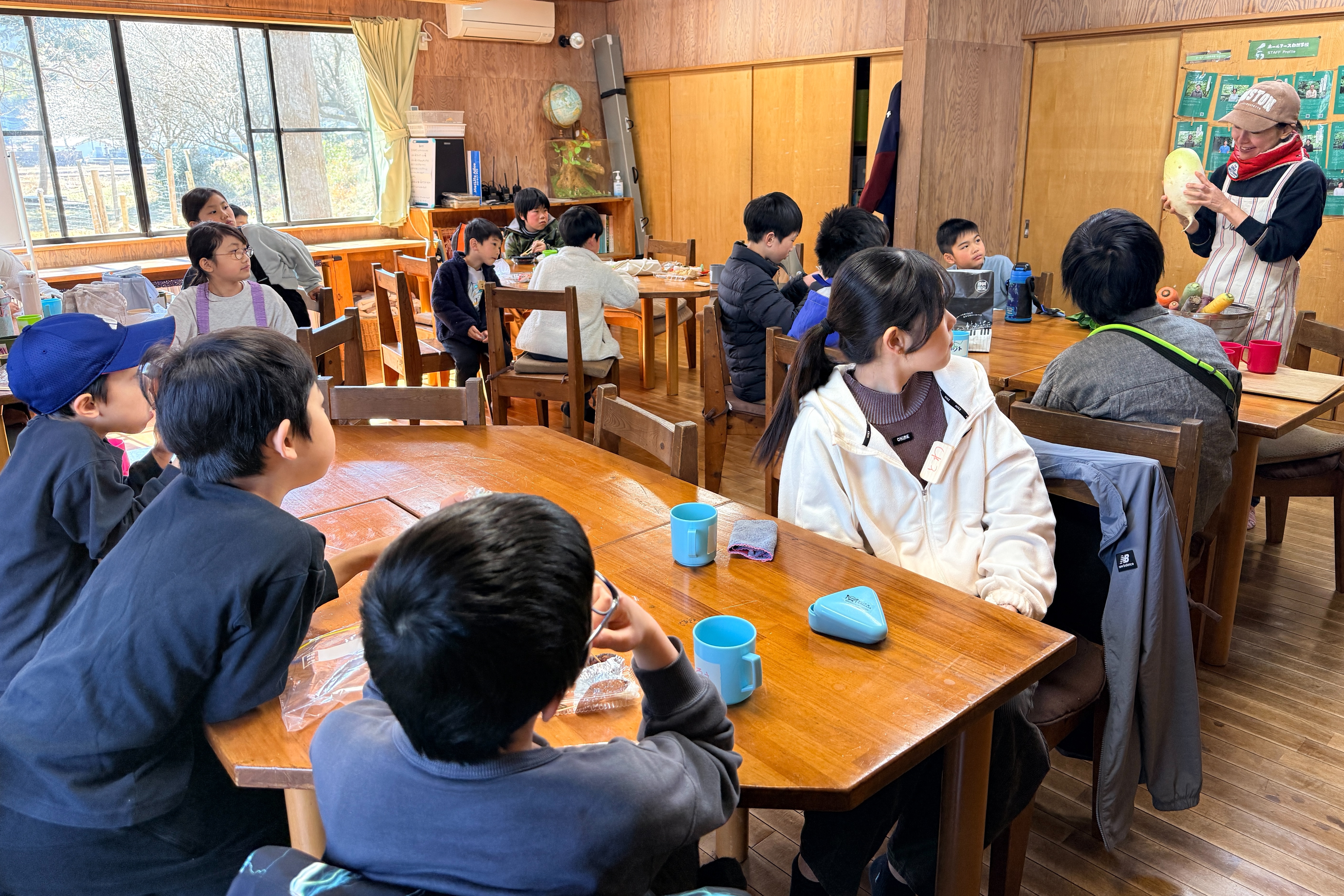 オリエンテーションでは、ホールアース農場のスタッフから野菜のお話を聞いたり、キャンプのルールを確認したりしました。