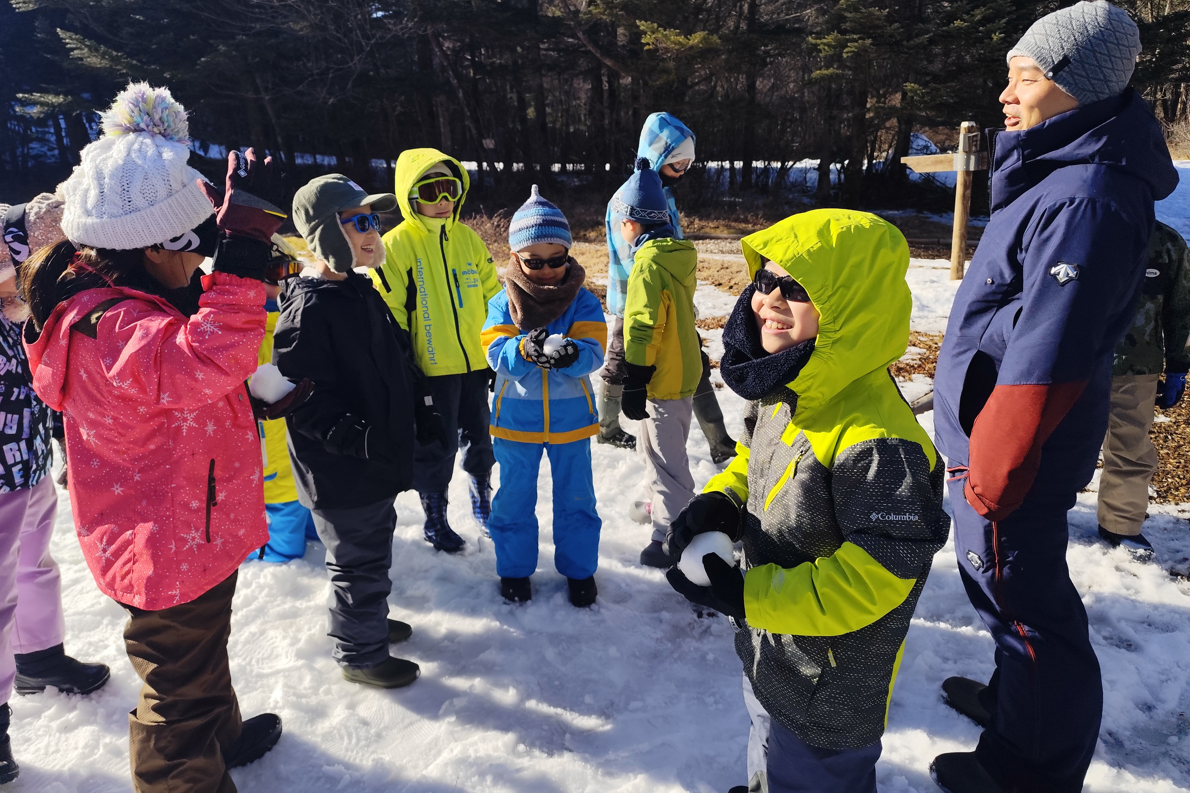 広場に到着するなり、子どもたちは吸い寄せられるように雪の中へ駆け寄っていきました。