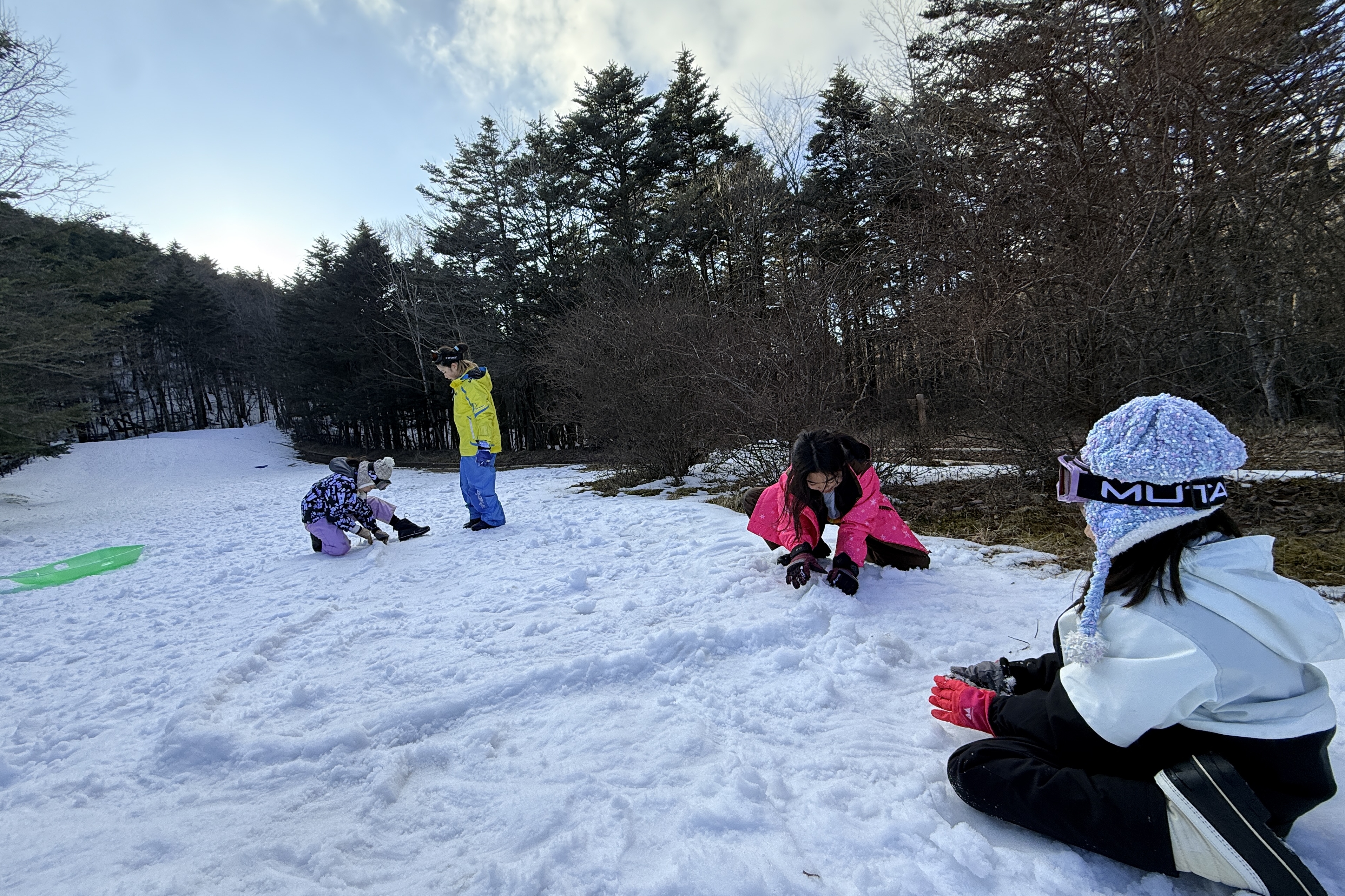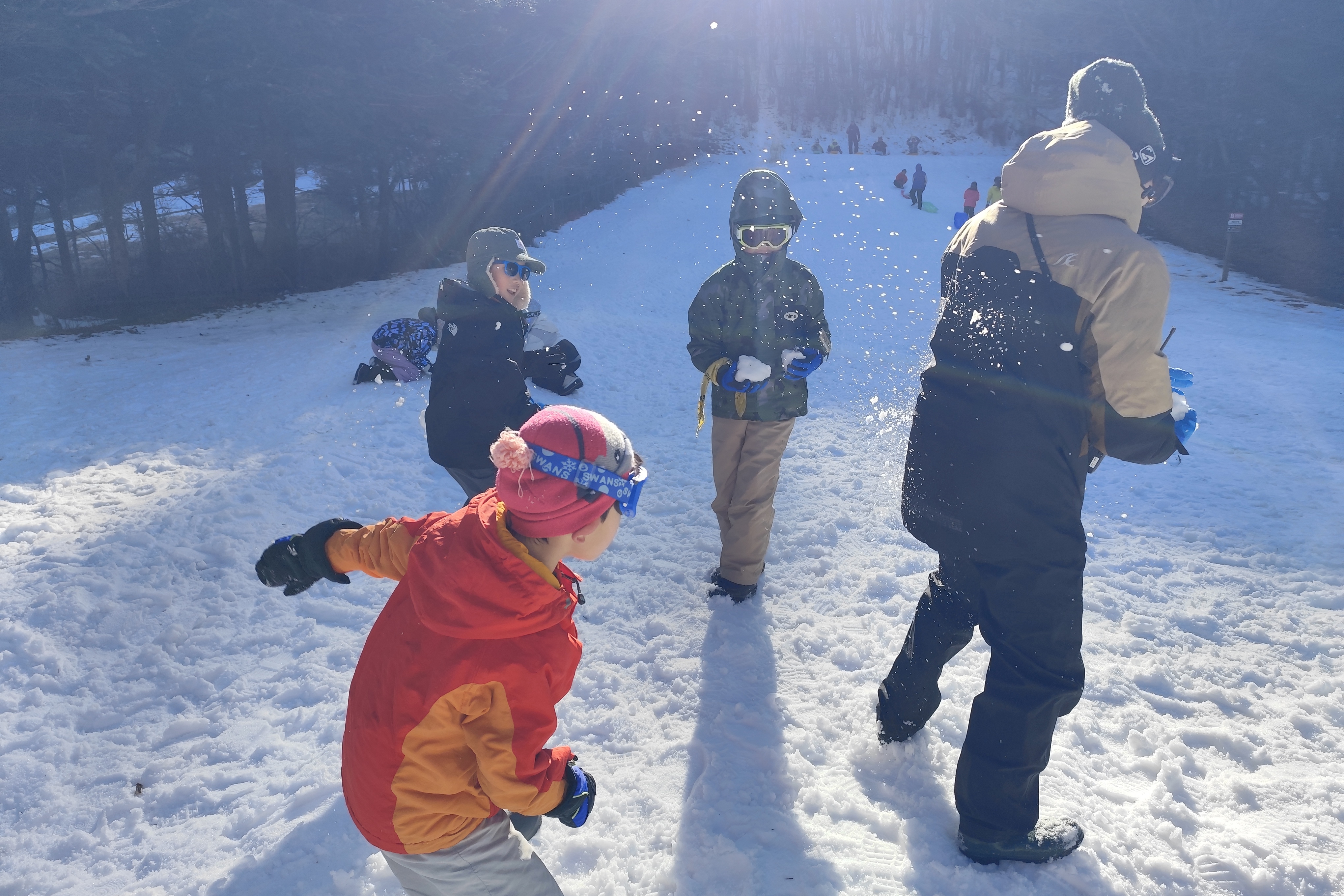 雪のついた斜面を登ってはソリで一気に下ったり、雪合戦をしたり。