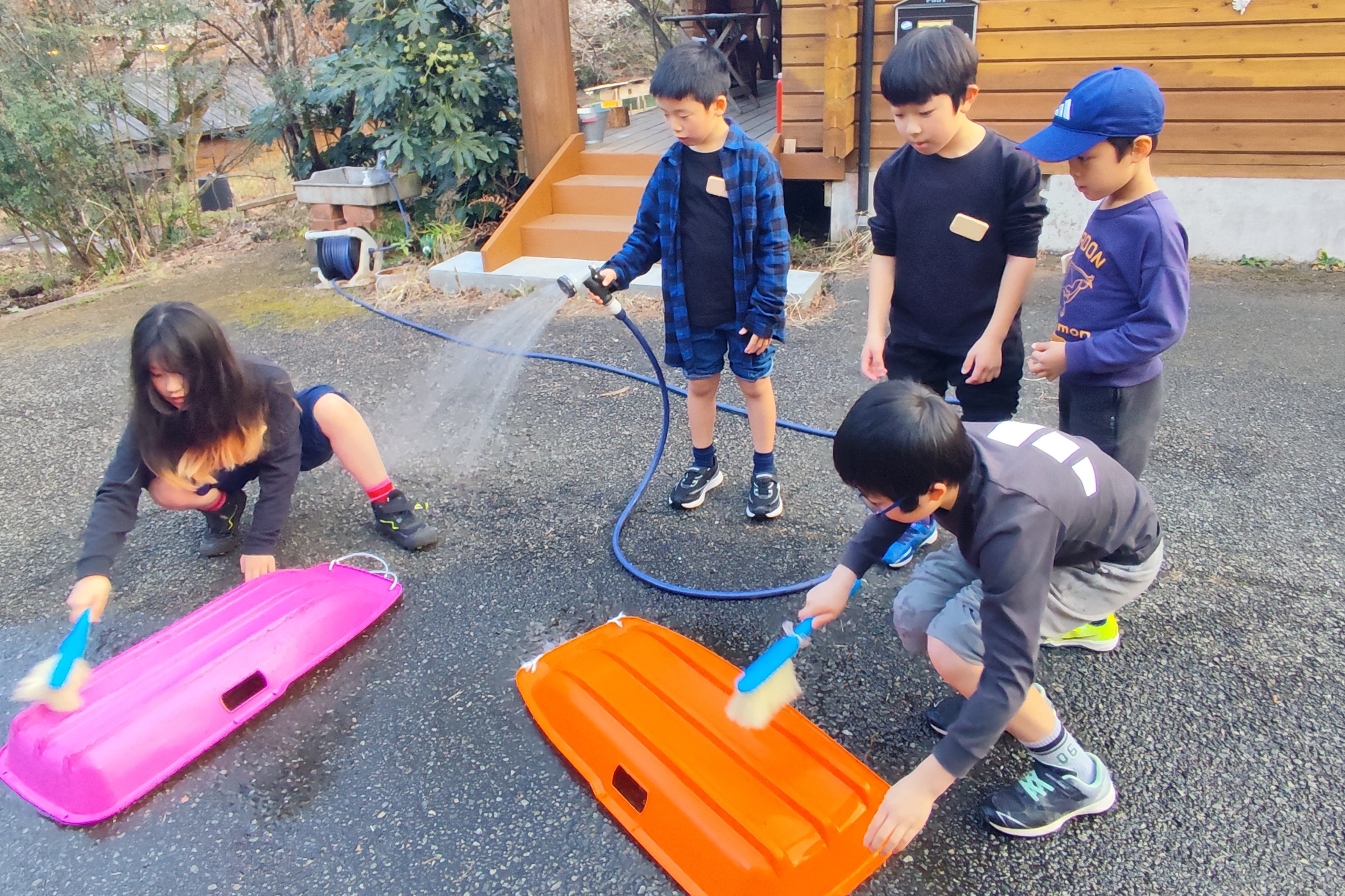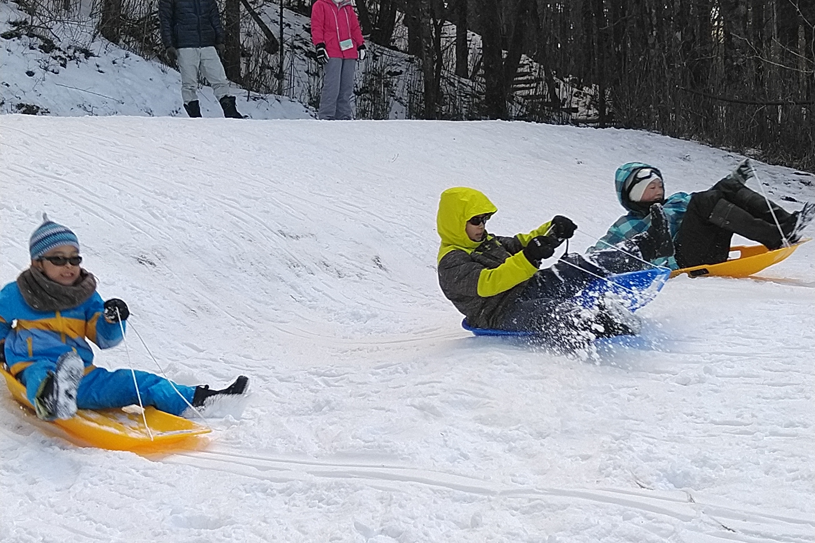 そり滑りでは、最初はバランスを崩していた子も「次こそは!」と何度も挑戦。