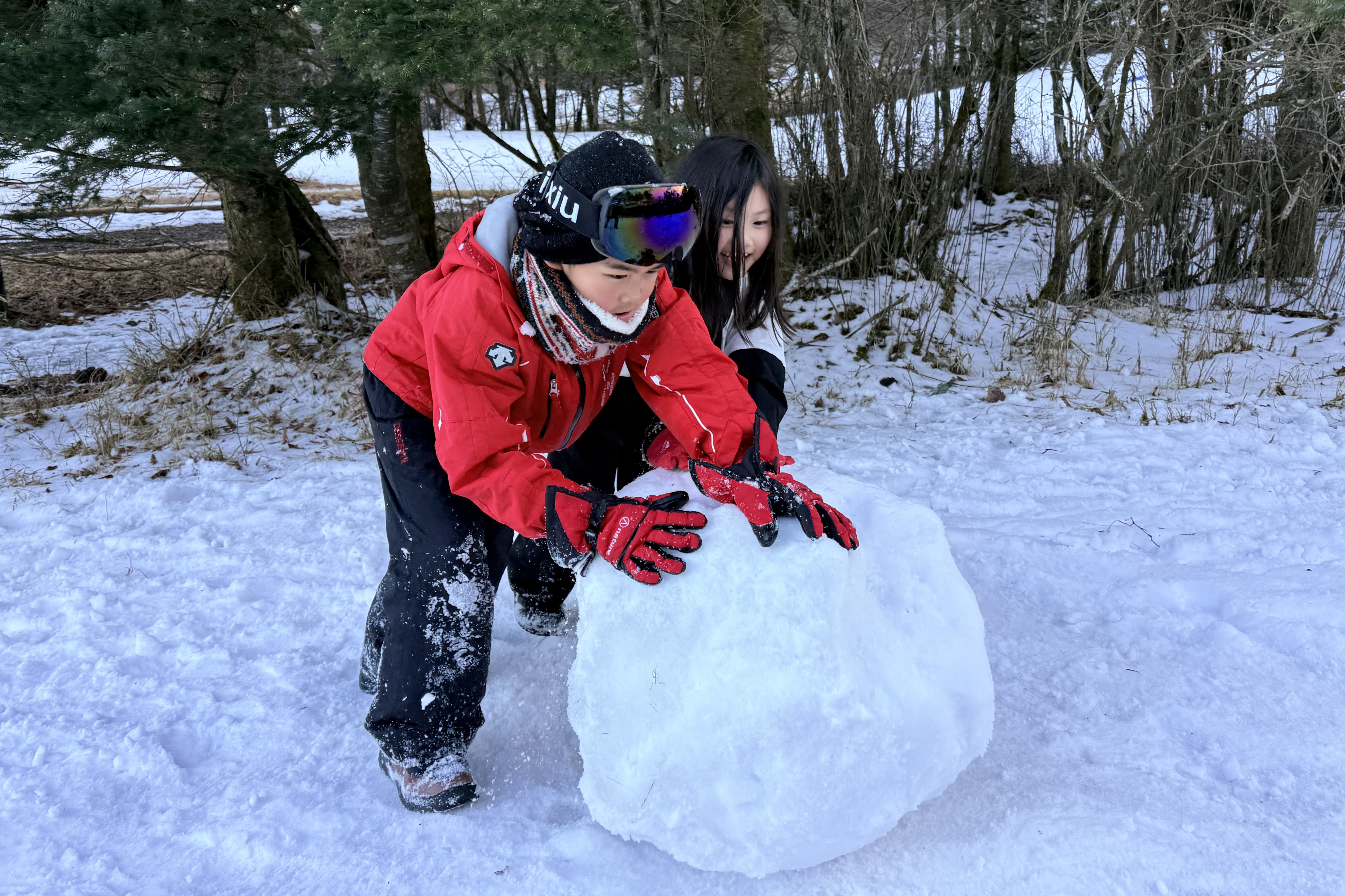また、仲間と協力して大きなかまくらを作ったり、スタッフも混ざって全力の雪合戦をしたりと、全身雪まみれになって遊び尽くしました。