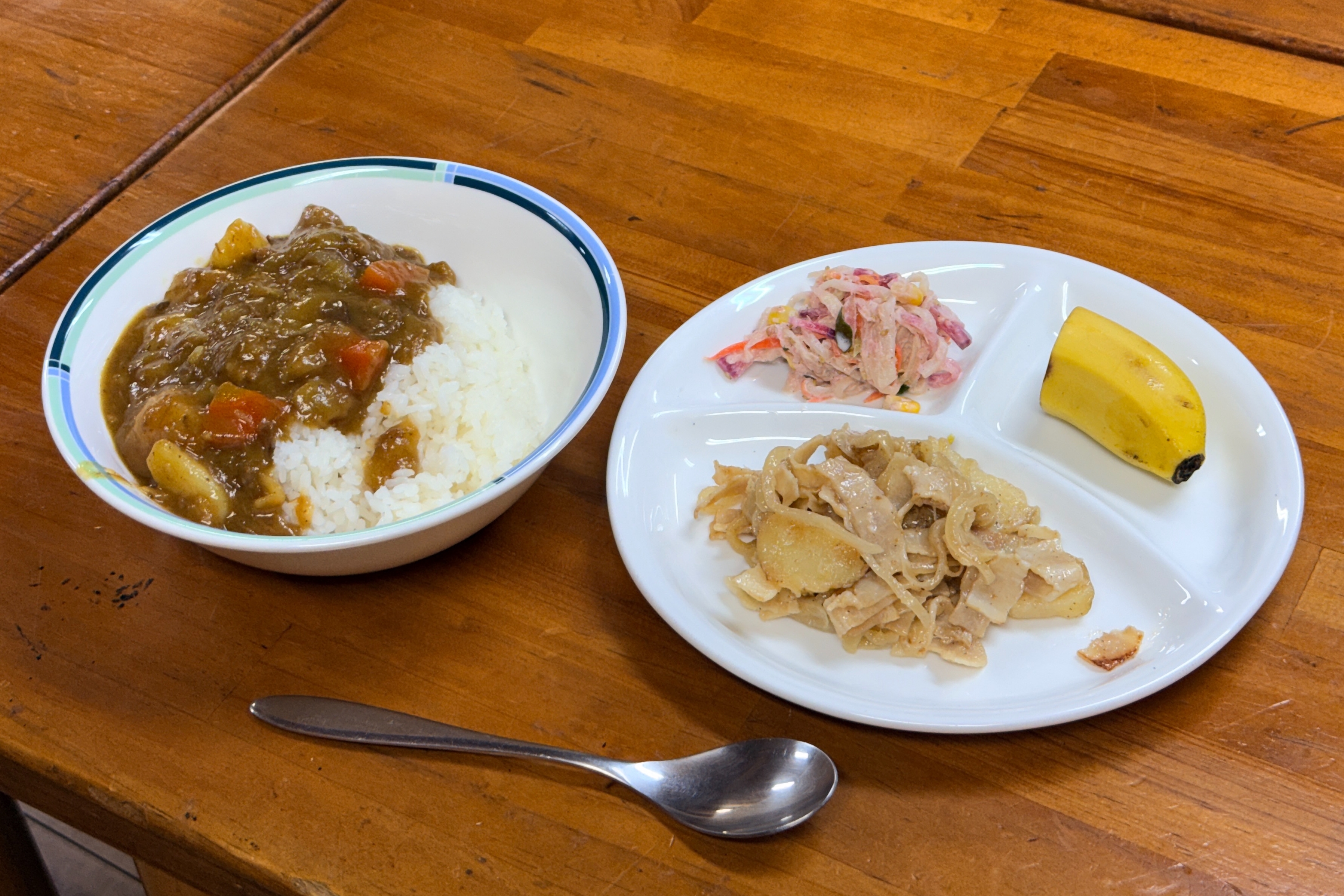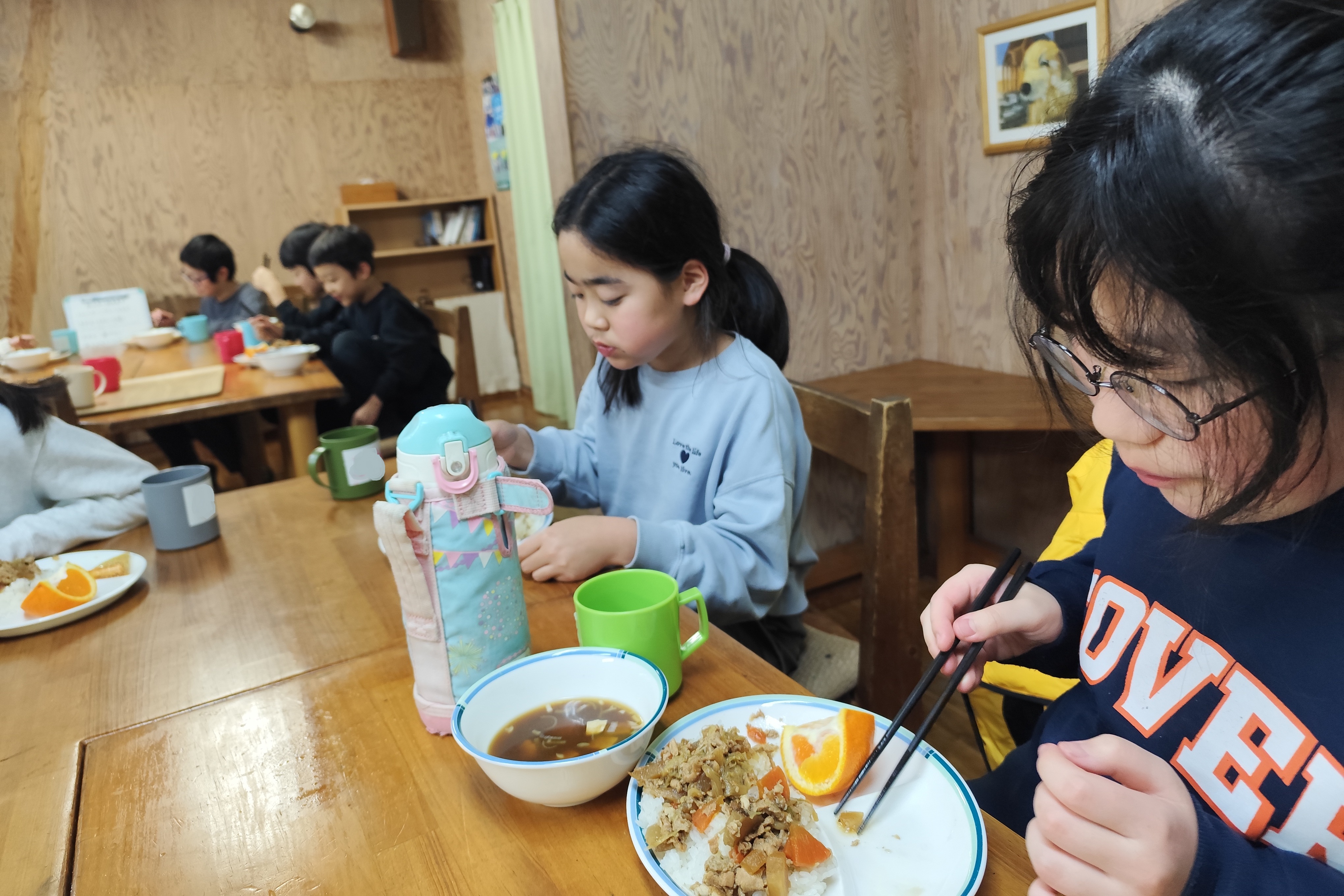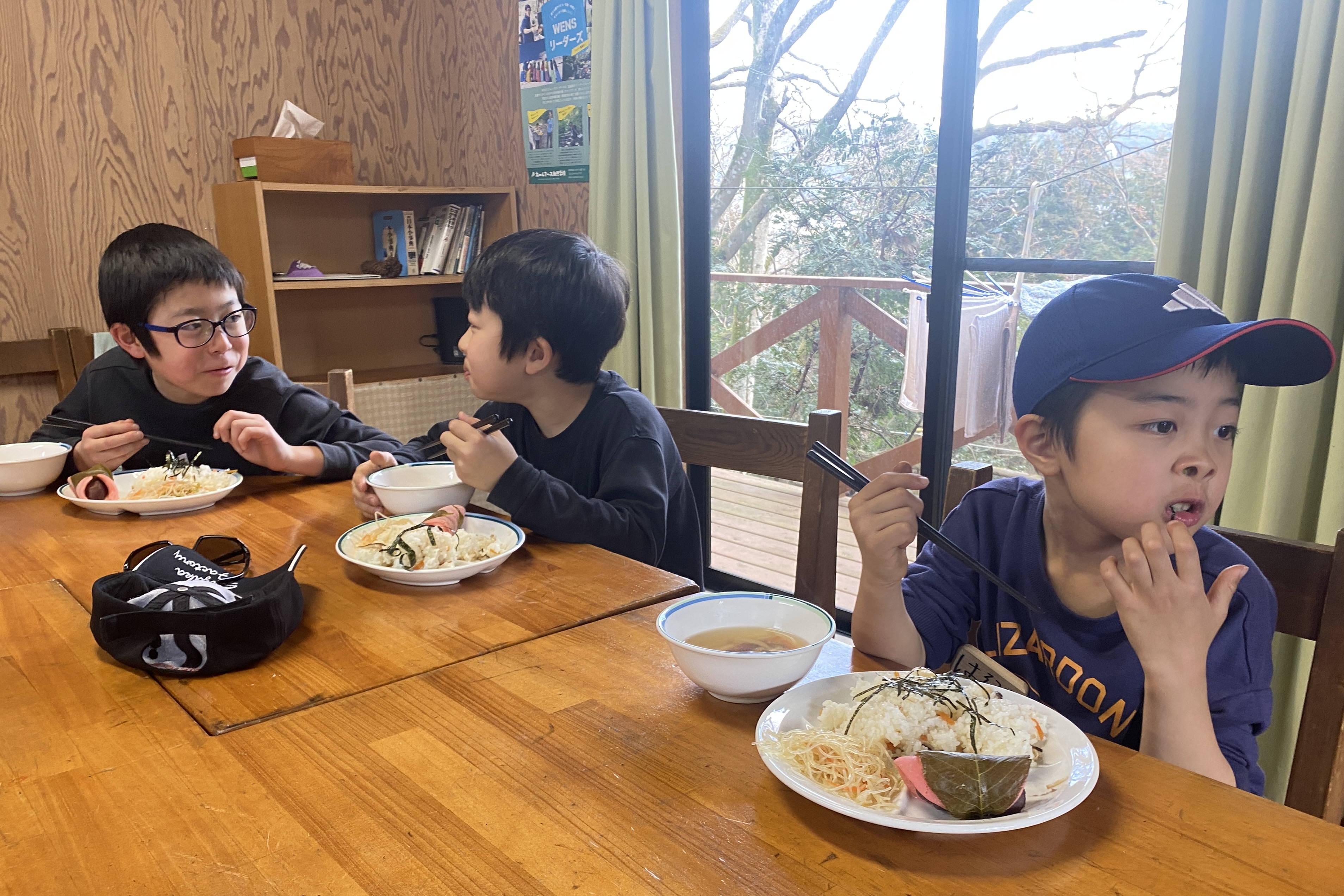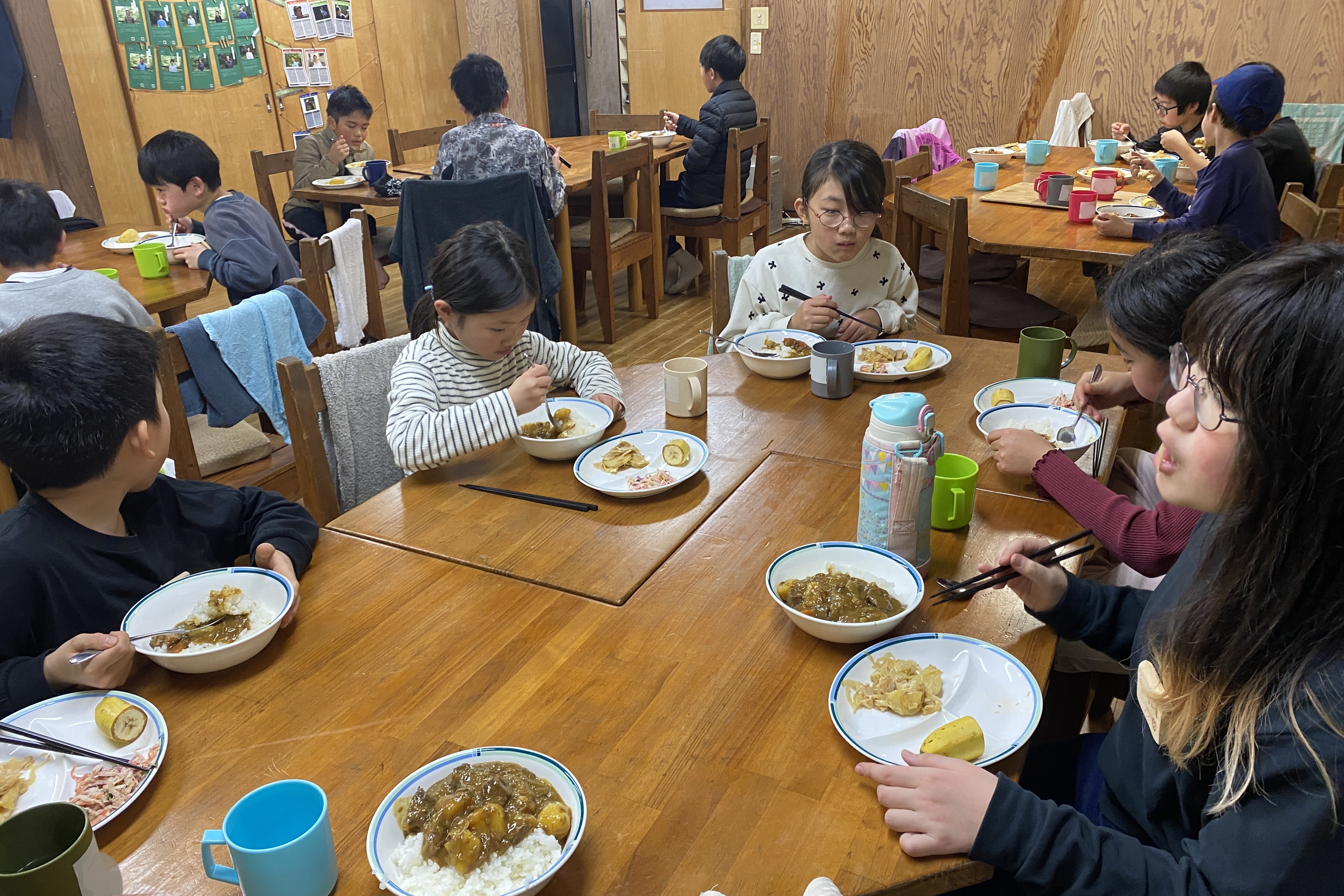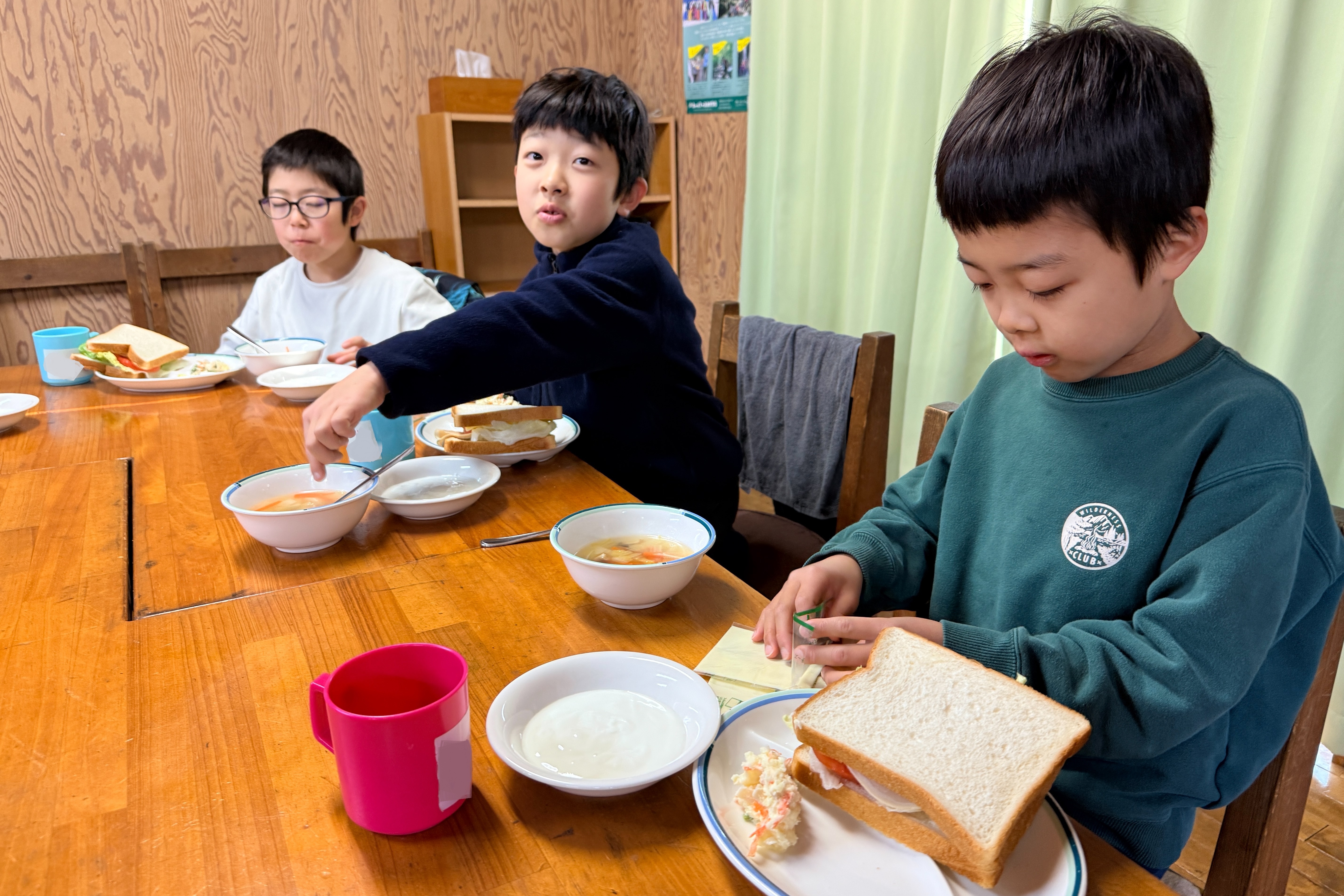 動物のお世話を終えたら、みんなの朝食。