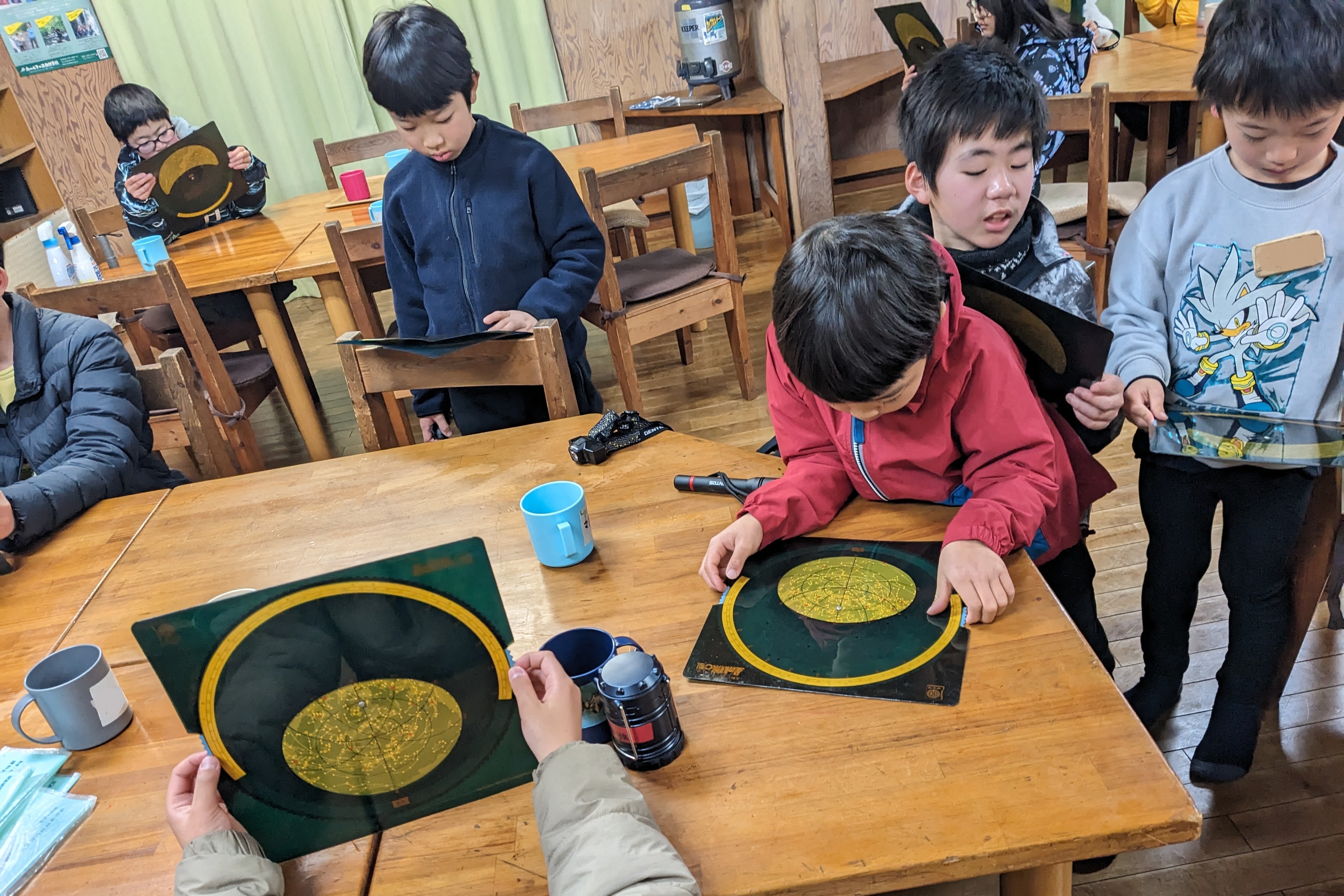 澄み切った空の下、星座盤を片手に満天の星空を観察しました。