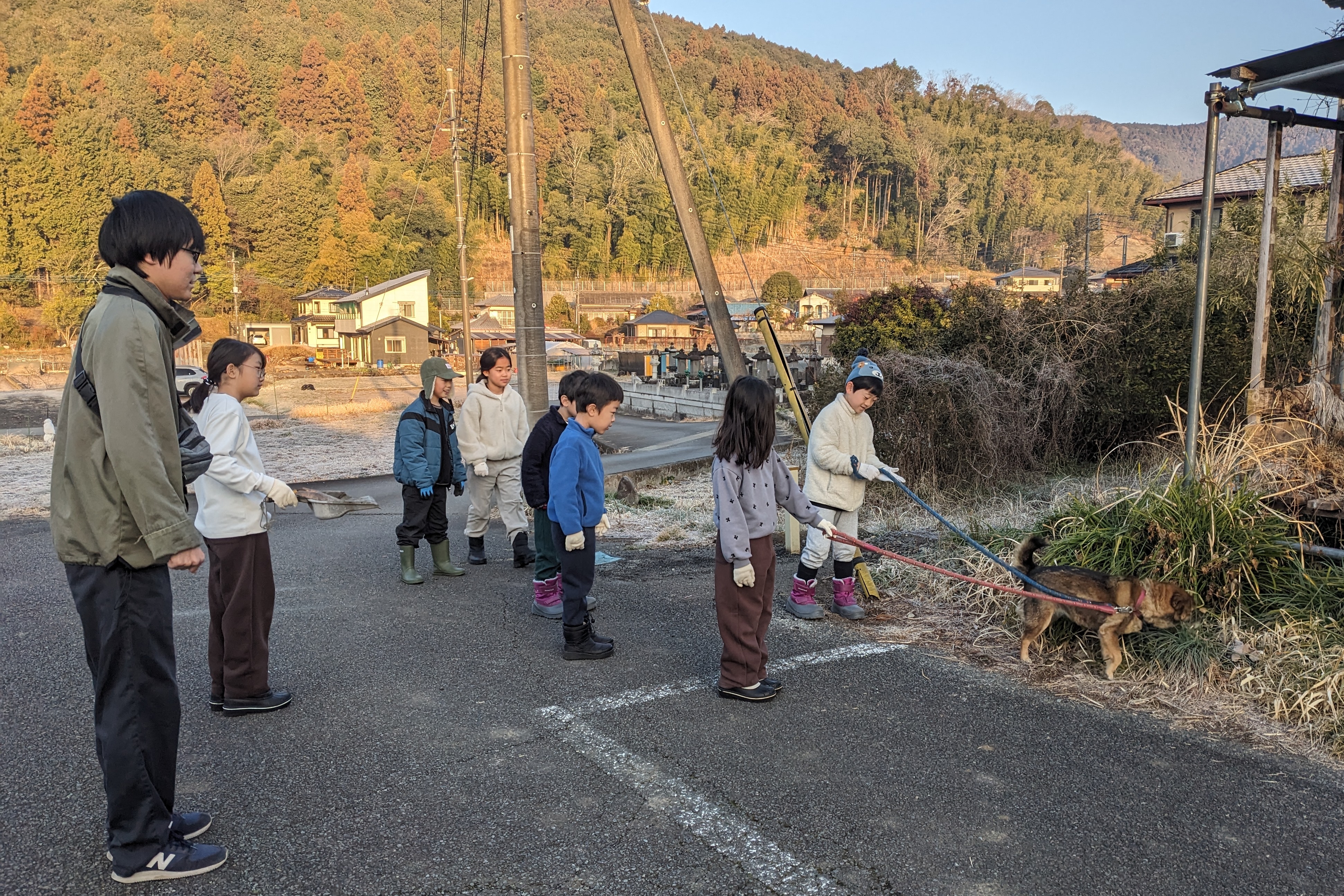 2日目の朝は、ヤギや犬たちのお世話から始まります。