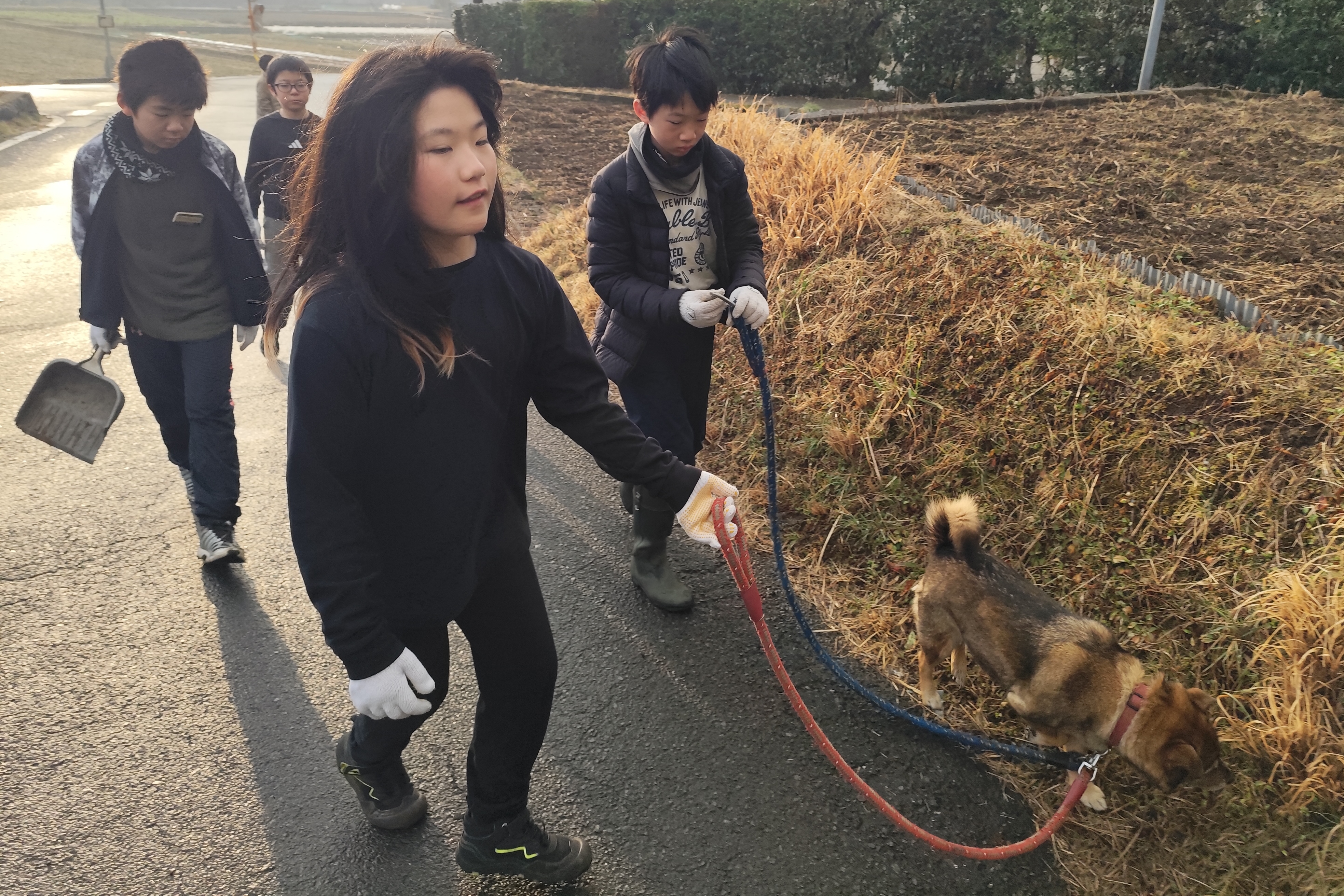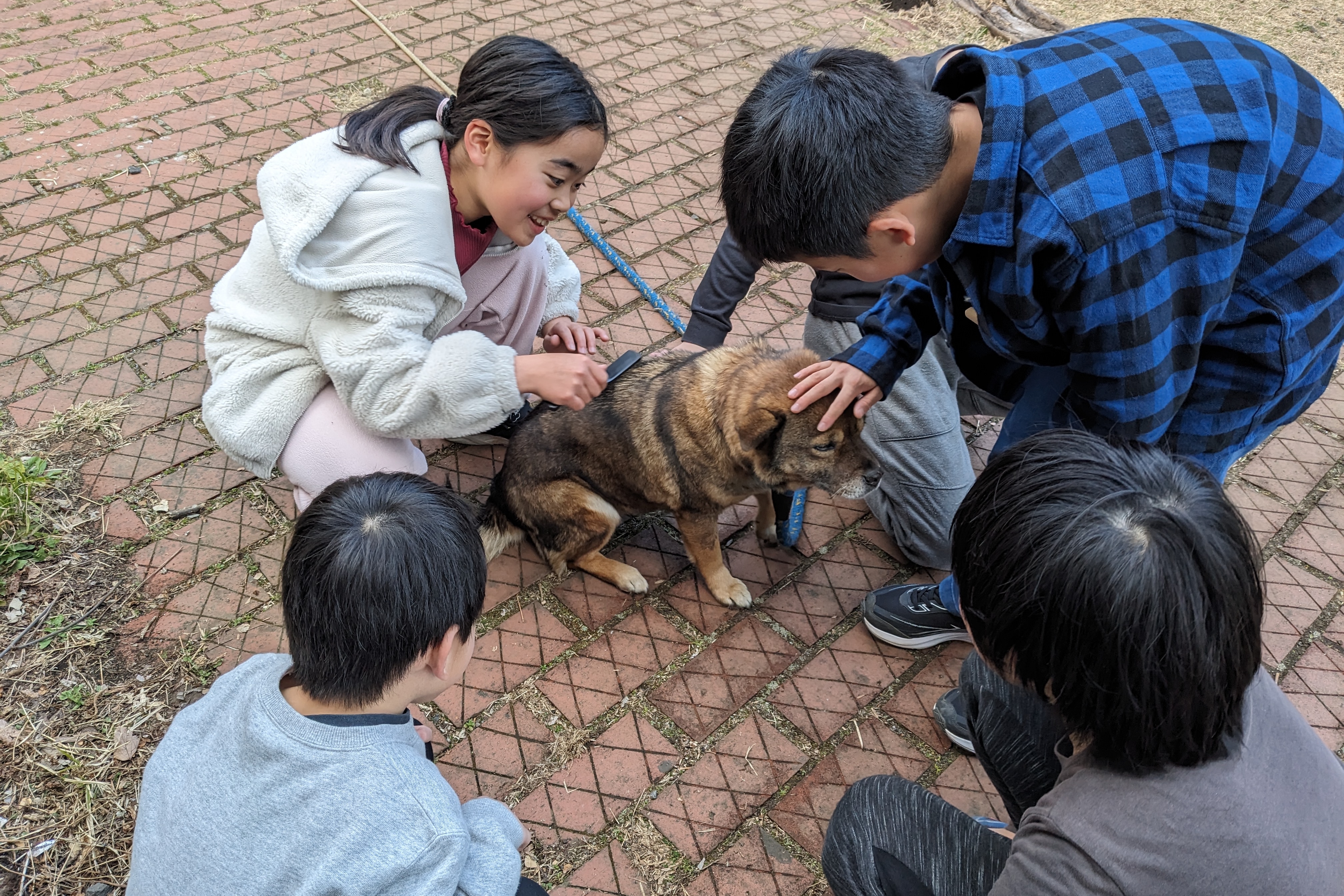 犬のサトと触れ合ったり、ソリ洗いきょうそうをしたり、