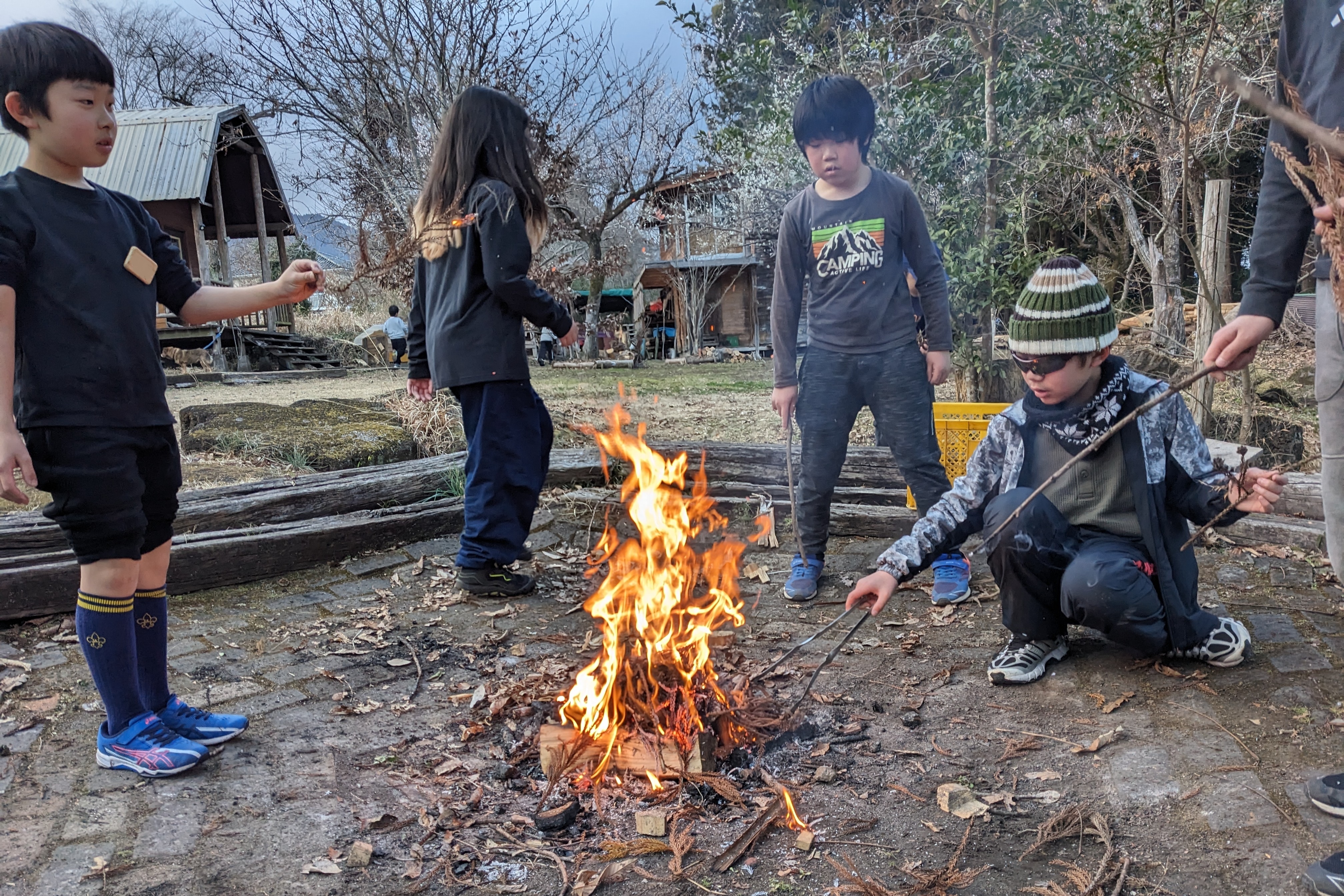 たき火をしたり、おにごっこをしたり。