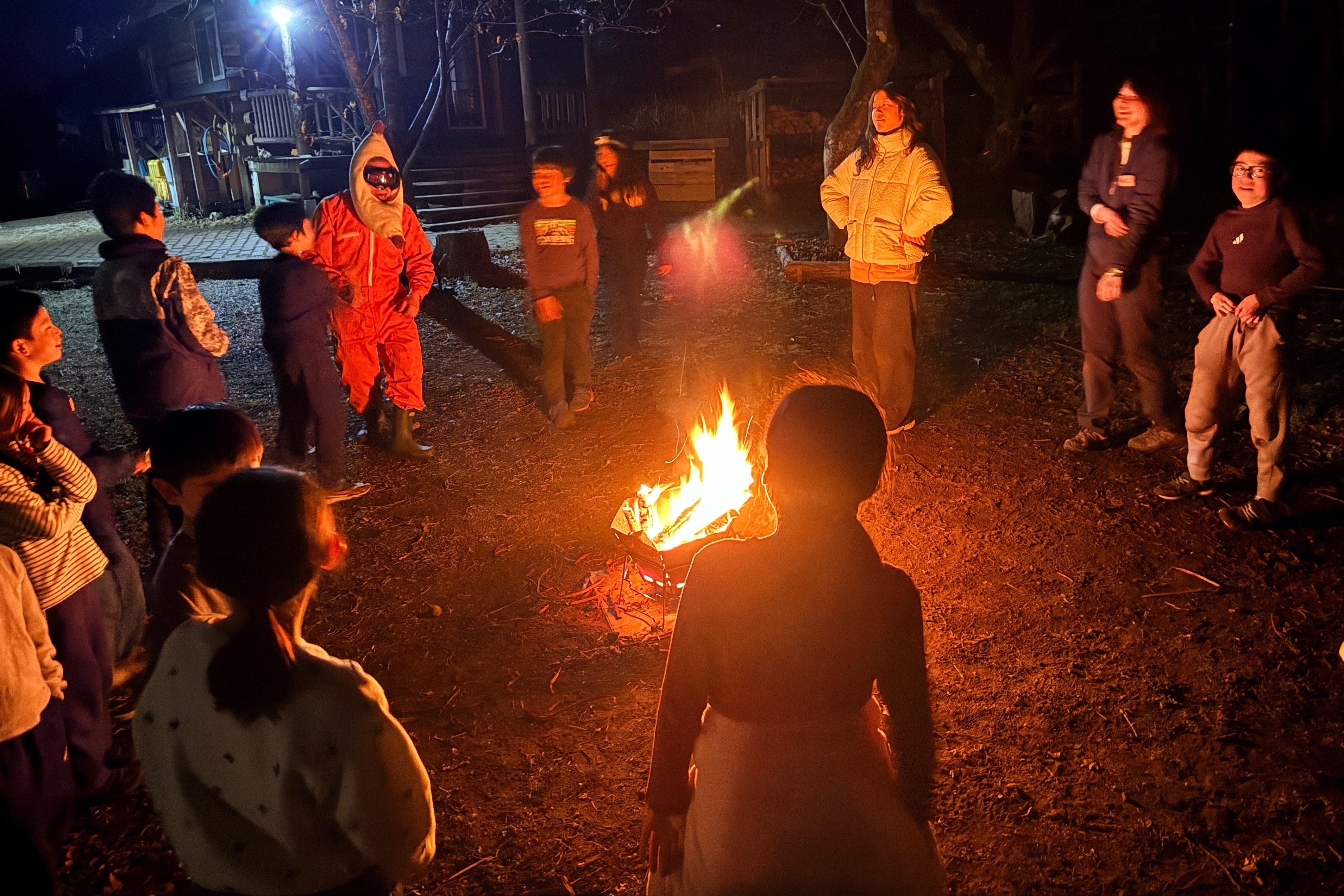 夕食後は、みんなで過ごす最後の夜を楽しく過ごそうと、キャンプファイヤーをしました。
