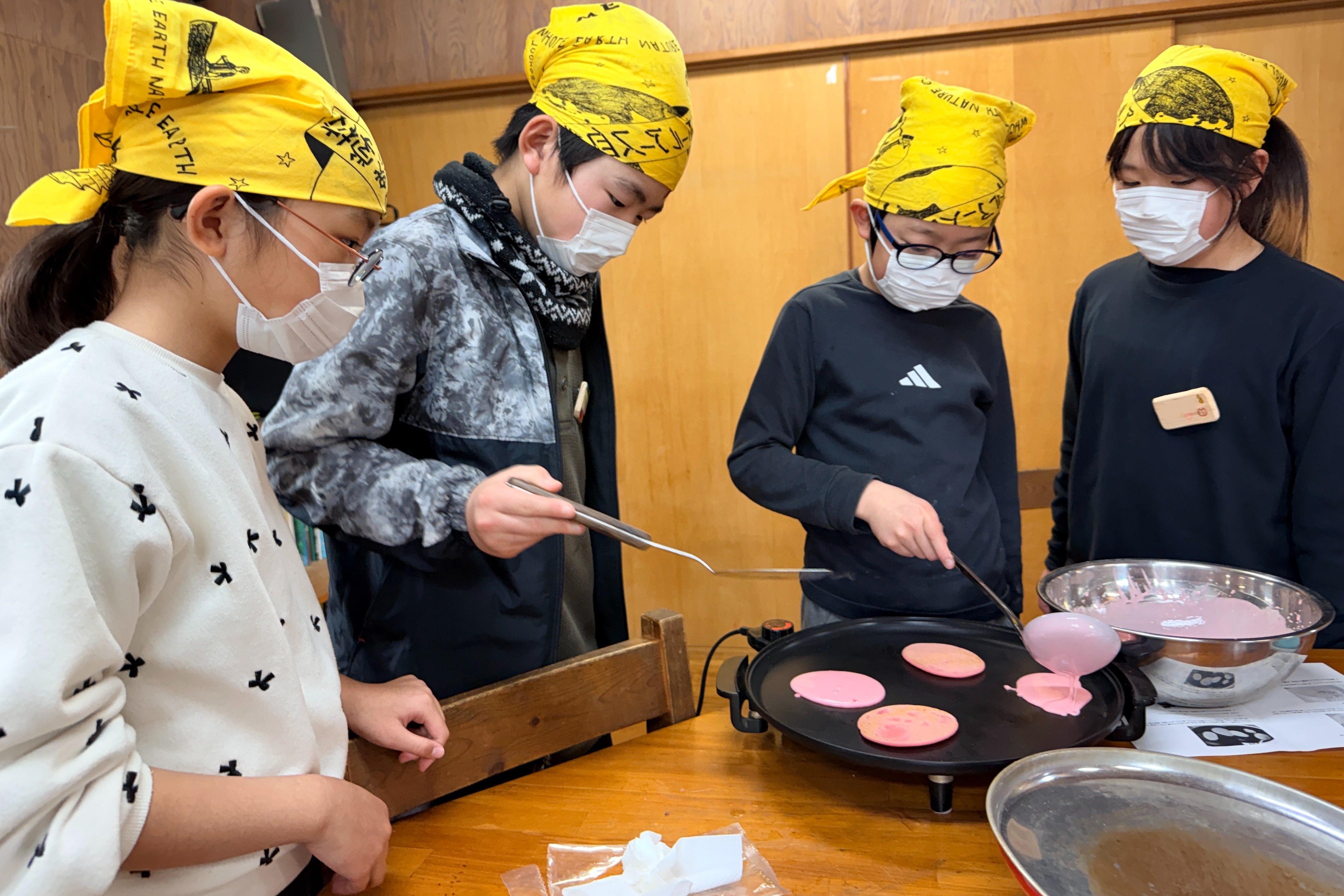 ひな祭りにちなんだ桜餅作りでは、生地をこね、あんこを丸める作業に「いい感じ!」と手応えを感じていたようです。