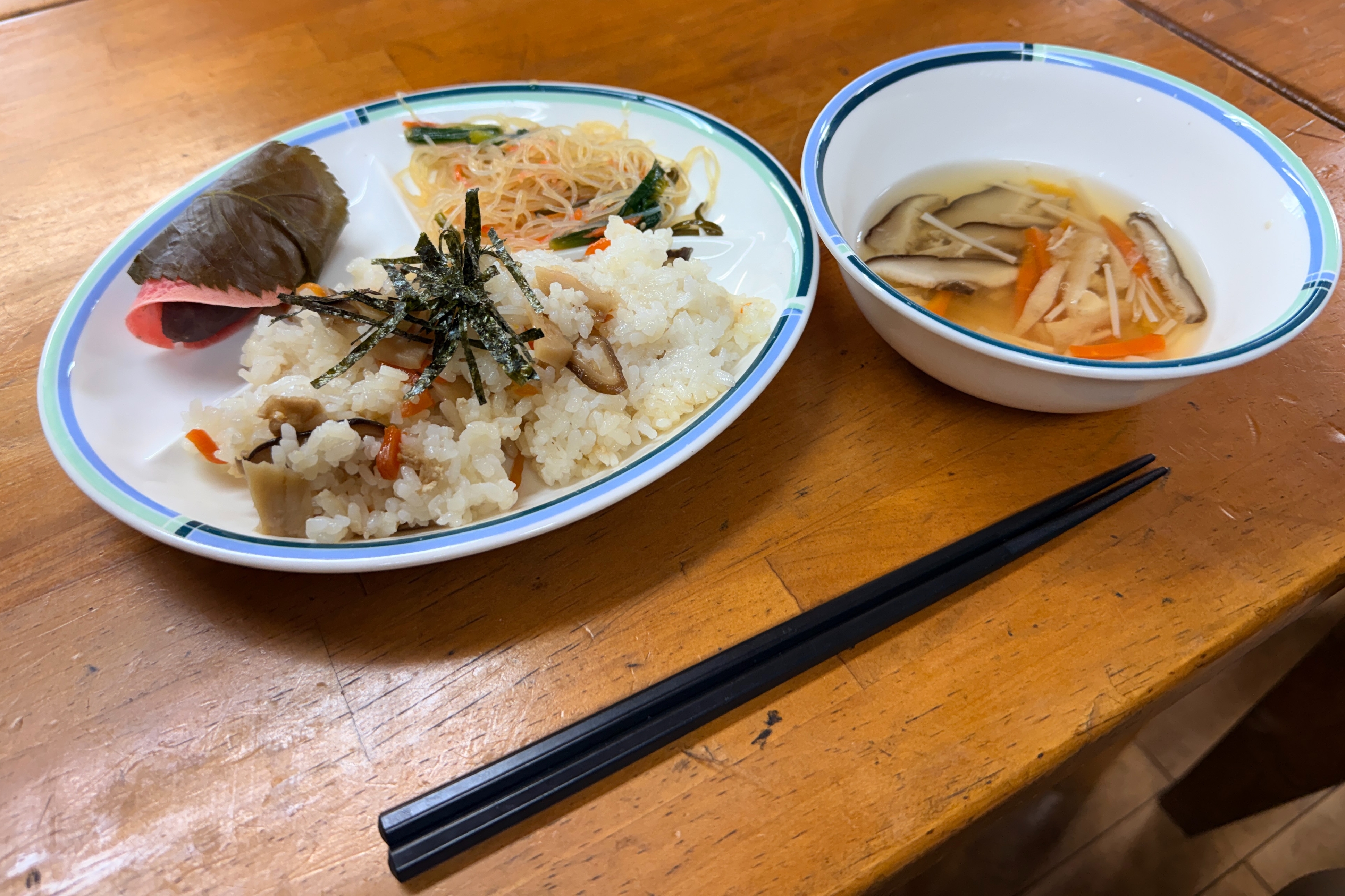 昼食には手作りの桜餅とちらし寿司をいただきました。