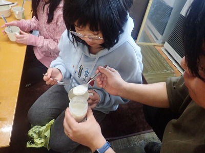 朝ごはんを食べ、そのあとはみんなでアイスクリームの液づくり。