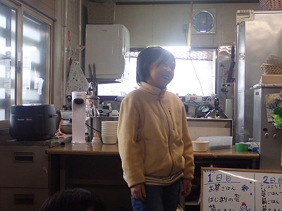 お昼ご飯は自分達で握ったおにぎりと温かいお味噌汁をいただきました。