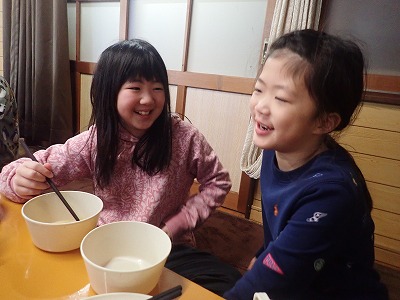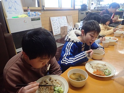 美味しいごはんをおなかいっぱい食べて、午後の雪遊びに向けて、みっちりとパワーを溜めました!