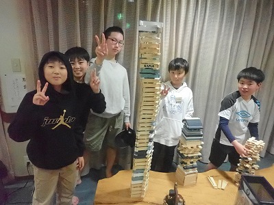 今回初導入のカプラや、いつものトランプやジェンガなどなどをお風呂の合間に楽しみつつ、待ちに待った夕ごはん!!