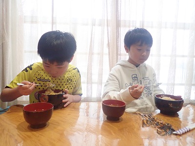 いつものキャンプだと、大きな子ども達と一緒に作って食べるのが主流で、野菜や卵を主とした、昔ながらの製法でできた出汁や調味料を使って作る食事ですが、今回は利用させていただいているあざみの方に、食事もお願いしています。