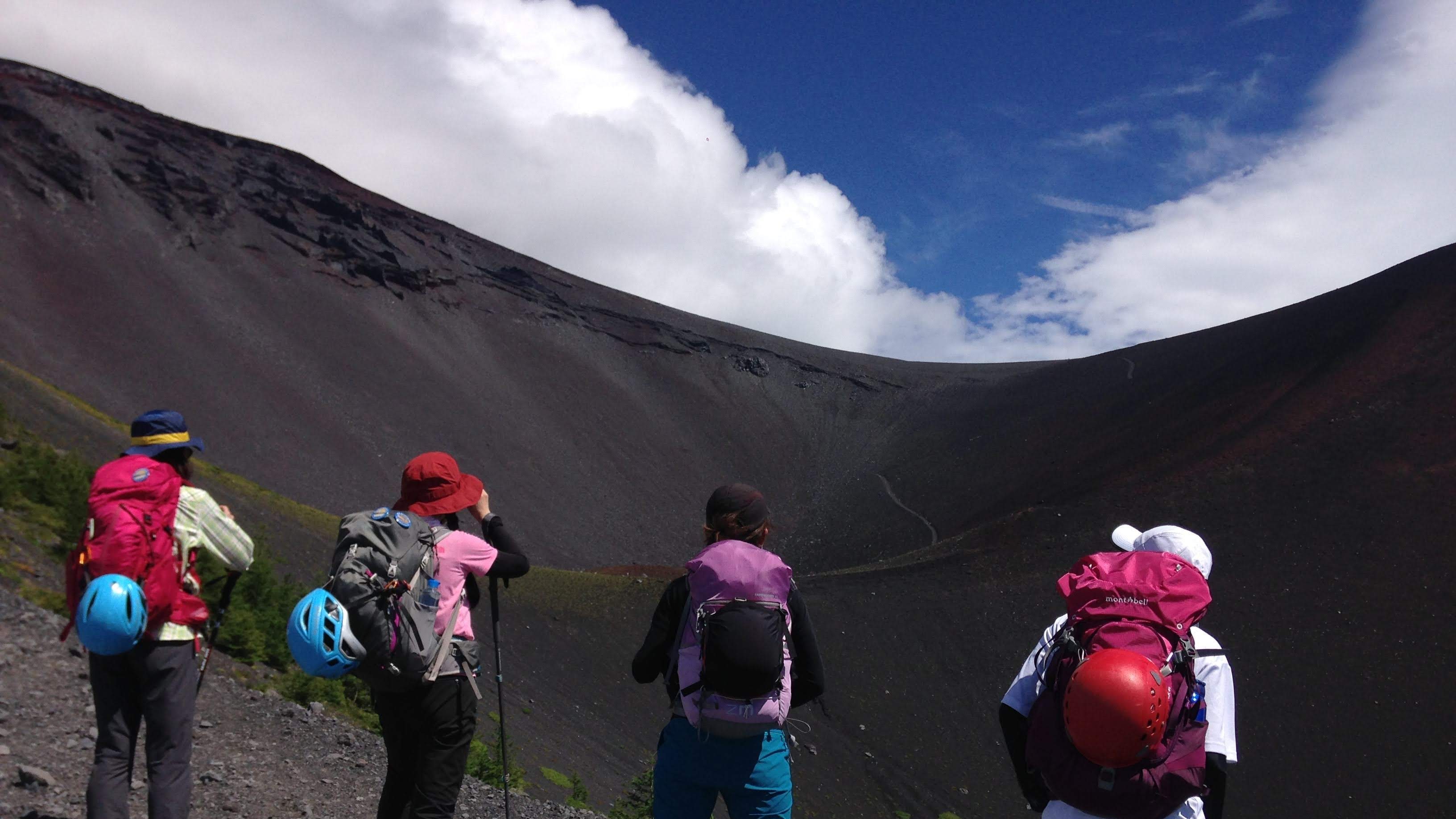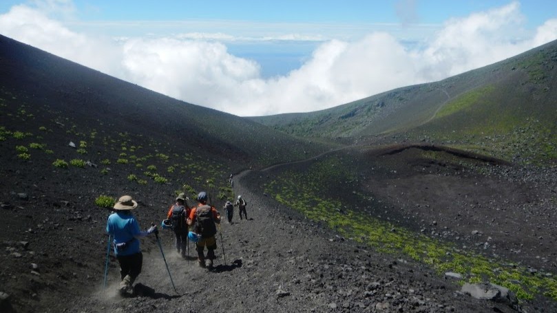 初日は集合した富士山の6.5合目付近にある宝永山(2,700m)を目指します。